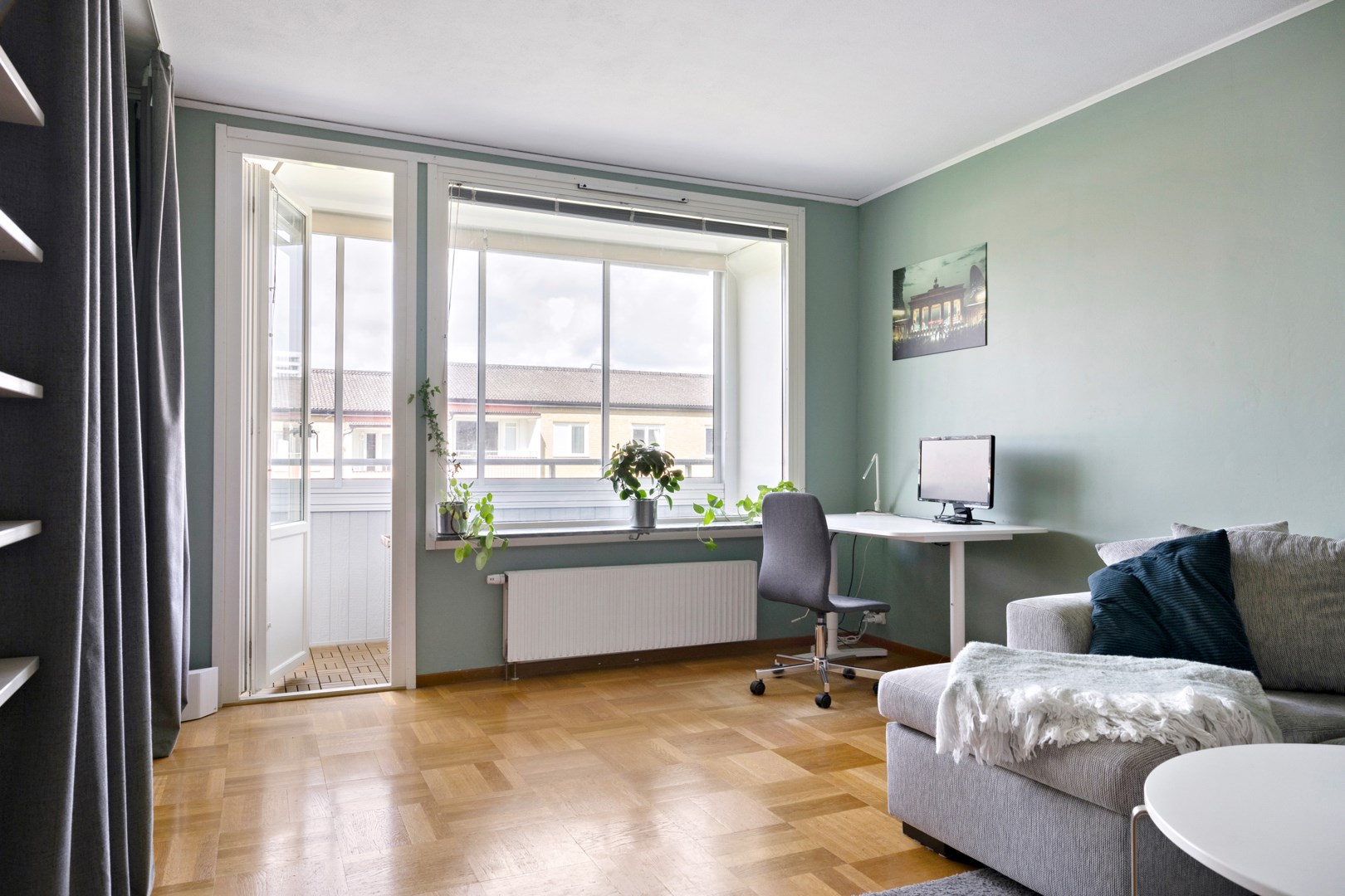 Separat kök med plats för matbord Smart planlösning med sovalkov Genomgående ljus med stora fönster Lättmöblerat vardagsrum Inglasad balkong Lågt belånad förening Gästlägenhet för besök Festlokal, bastu, gym och hobbyrum Nära natur och promenadstråk Gångavstånd till Linero torg Snabbt till