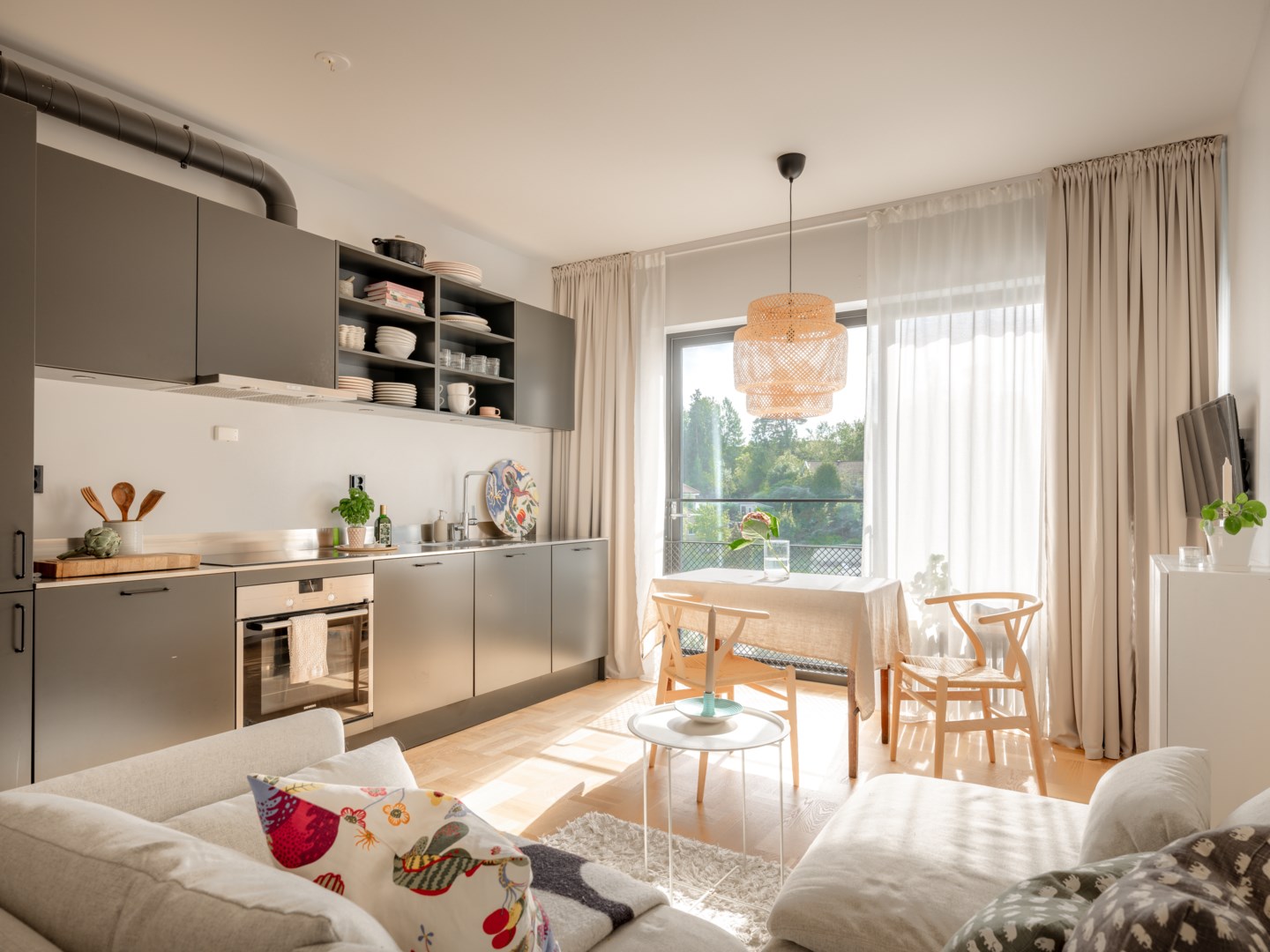 Välkommen till denna välplanerade enrummare som kombinerar smart yteffektivitet med modern elegans. Här bor du i en bostad med påkostade materialval, genomgående hög standard och en avgift som håller nere boendekostnaderna – allt i en förening med stabil ekonomi. De stora fönsterpartierna i