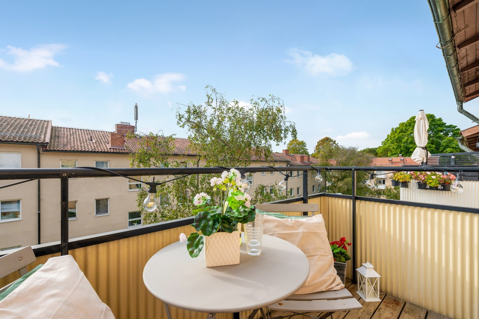 Välkommen högst upp i huset till en charmig etta med balkong i soligt sydvästläge! * Balkong i söderläge! * Högst upp i huset! * Bra förvaringsutrymmen! * Avgift där bredband är inkluderat! * BRF äger marken! * Bastu i brf! * Smidiga kommunikationer! Lägenheten är välplanerad med ett