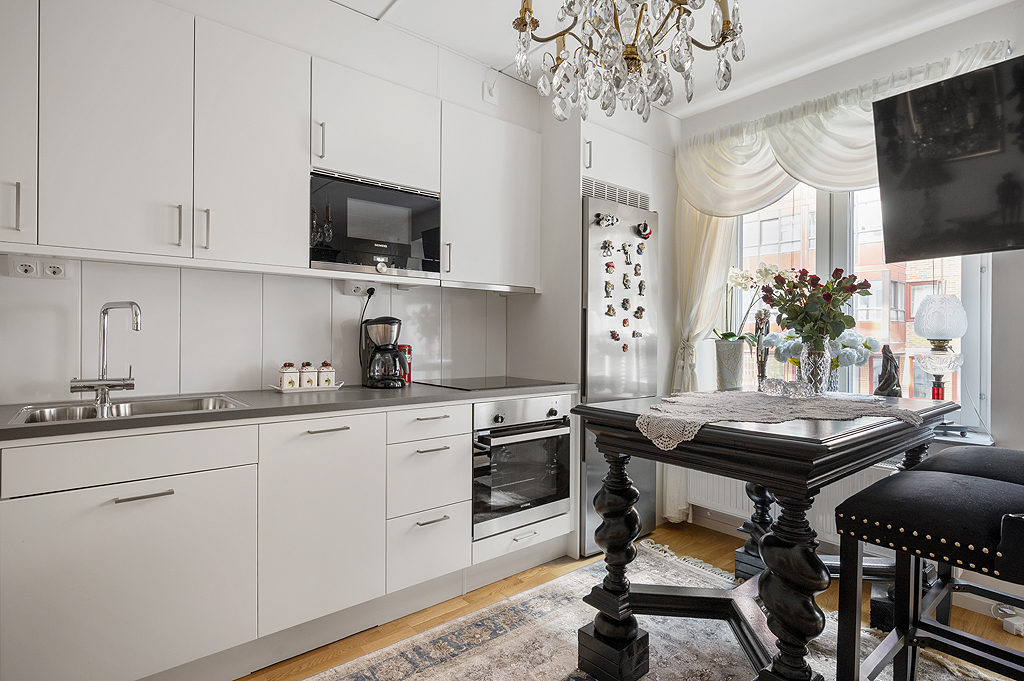 Nu erbjuds vi denna väldisponerad bostad i ett hus byggt 2018/19 med alla bekvämligheter. Här lockas vi av hög standard som bla. innefattar ett fullstort kök från Vedum, gårdsvänd balkong och egen tvättmöjlighet i bostadens rymliga badrum. 1 rum och Kök Området erbjuder en mix av gratis-, betal-