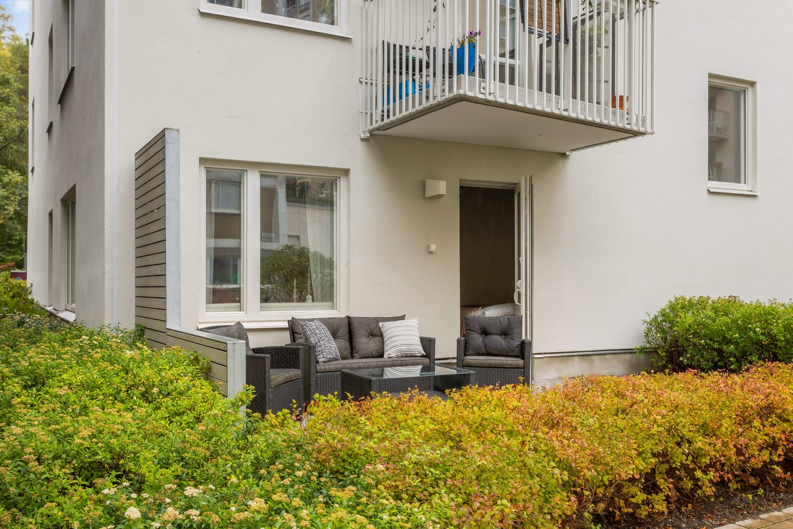 Denna välplanerade hörnlägenhet bjuder på ett fantastiskt ljusflöde tack vare stora fönster i flera väderstreck. Den generösa uteplatsen erbjuder gott om plats för både utemöbler och grönska och skapar en inbjudande miljö för avkoppling eller sociala tillställningar. Lägenheten ligger bekvämt på