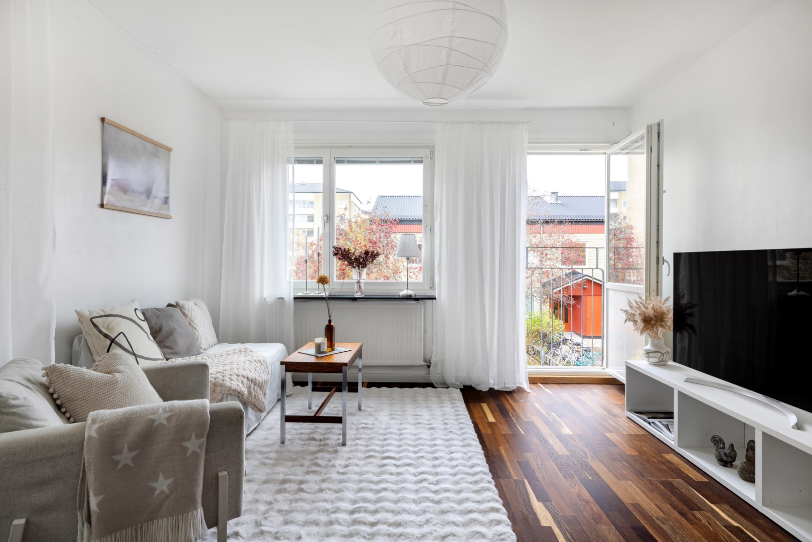 Välkommen till ett hem som bjuder på härligt ljusinsläpp, välplanerade ytor och en inbjudande atmosfär. Det rymliga vardagsrummet har fönster i två väderstreck som skapar en luftig känsla och rymmer både soffgrupp och matplats. Köket är trivsamt och funktionellt med gott om förvaring, bra arbetsytor