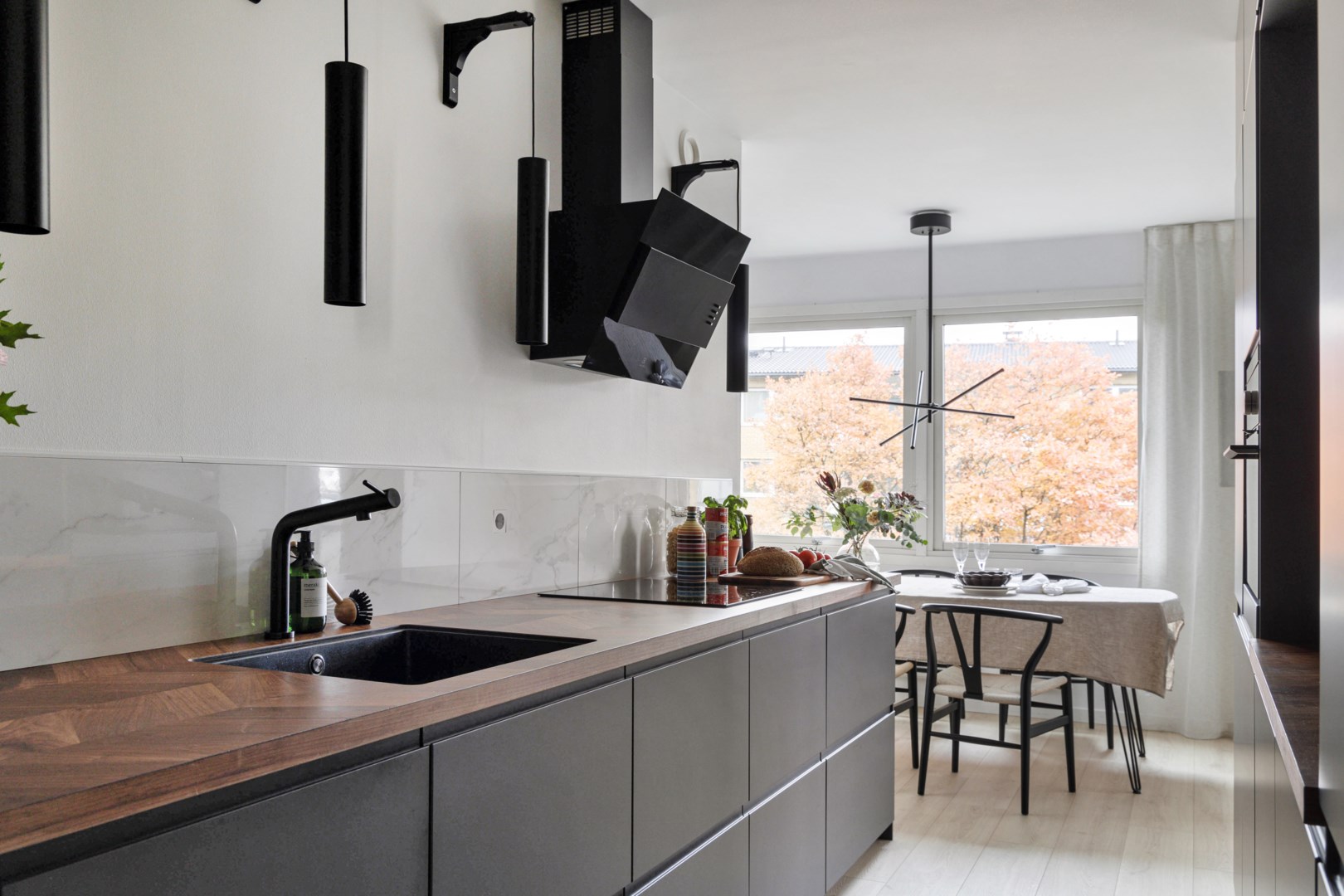 Välkommen till denna välplanerade och stilrena genomgångslägenhet om 65 kvm bekvämt belägen en trappa upp i huset. Med stora fönster i två väderstreck flödar ljuset in i bostaden, vilket skapar en härlig känsla av rymd och harmoni. Köket är praktiskt utformat med gott om skåpförvaring och generösa