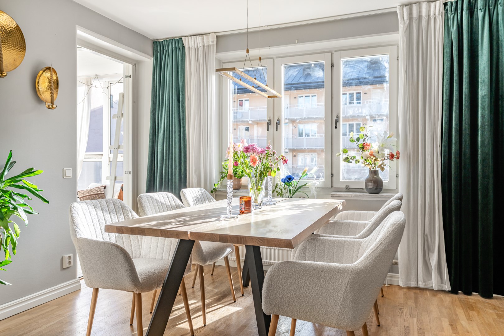 Här erbjuds en genomgående ljus och välplanerad bostad om 61 kvm med fina ytskikt och social planlösning. Högst upp i huset, på våning 5 av 5, bor du ostört med härlig utsikt mot Norra Tornen i Hagastaden från köksfönstret och en mysig utsikt över den lummiga innergården från den inglasade balkongen