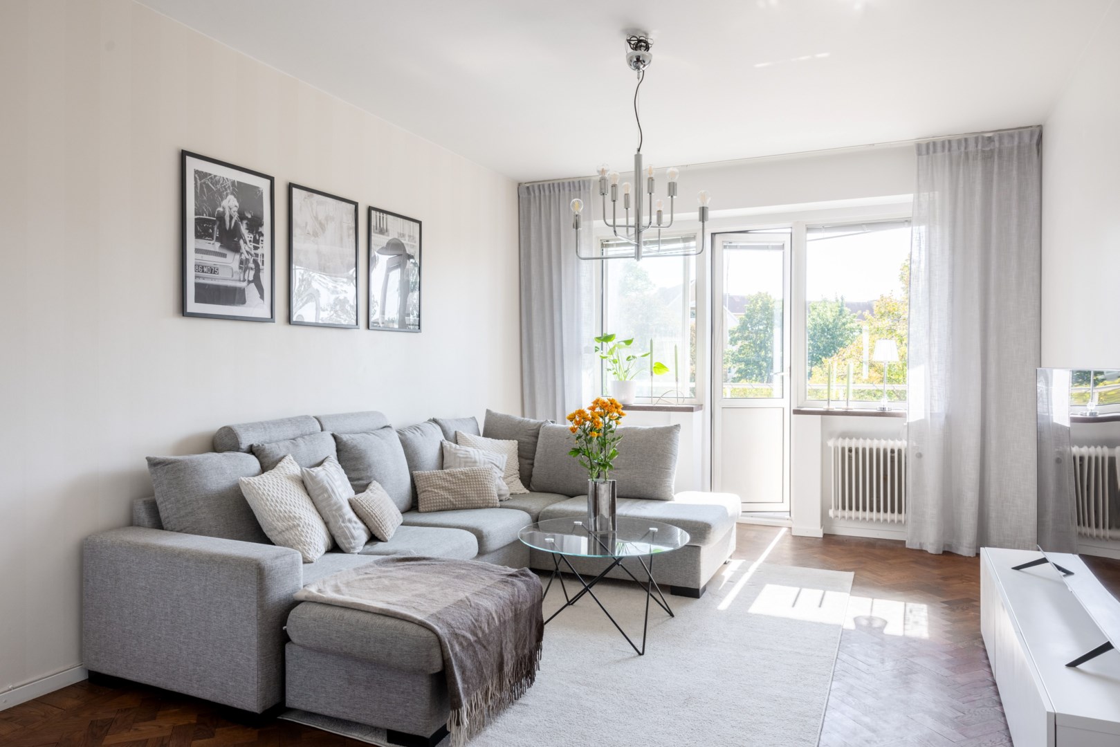 Hiss i fastigheten Inglasad balkong Fräscha ytskikt Stilrent kök Sociala sällskapsytor Originaldetaljer Vacker fiskbensparkett Väl tilltagen takhöjd Insynsskyddat läge Grönskande utsikt Fridfullt sovrum Helkaklat badrum Vind- & källarförråd Gemensam takterrass Pendlarvänligt läge Matbutik & service