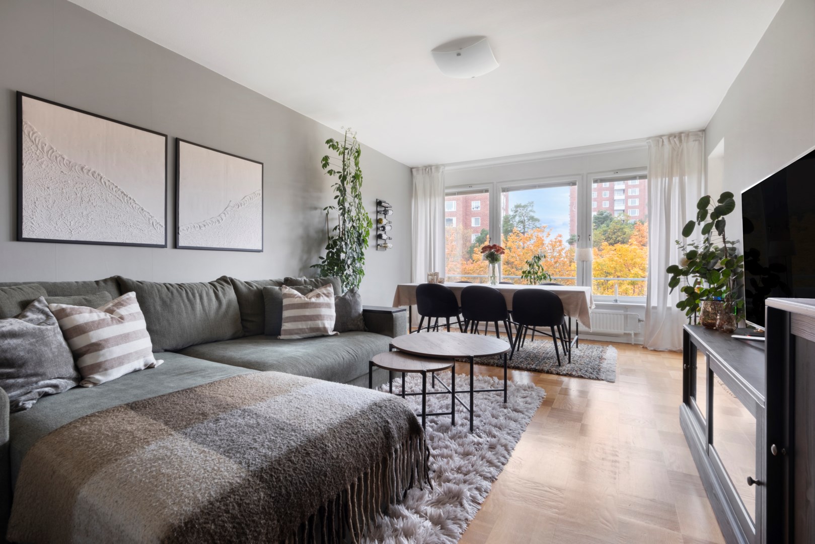 Ljus och rymlig 2:a med solig västerbalkong som bjuder på eftermiddags- och kvällssol. Här får du en härlig plats att njuta av dagens sista solstrålar och himlens färgspel vid solnedgång. Bostaden är belägen högst upp i huset i insynsskyddat läge, med utsikt mot himmel, träd och grönska – en rofylld