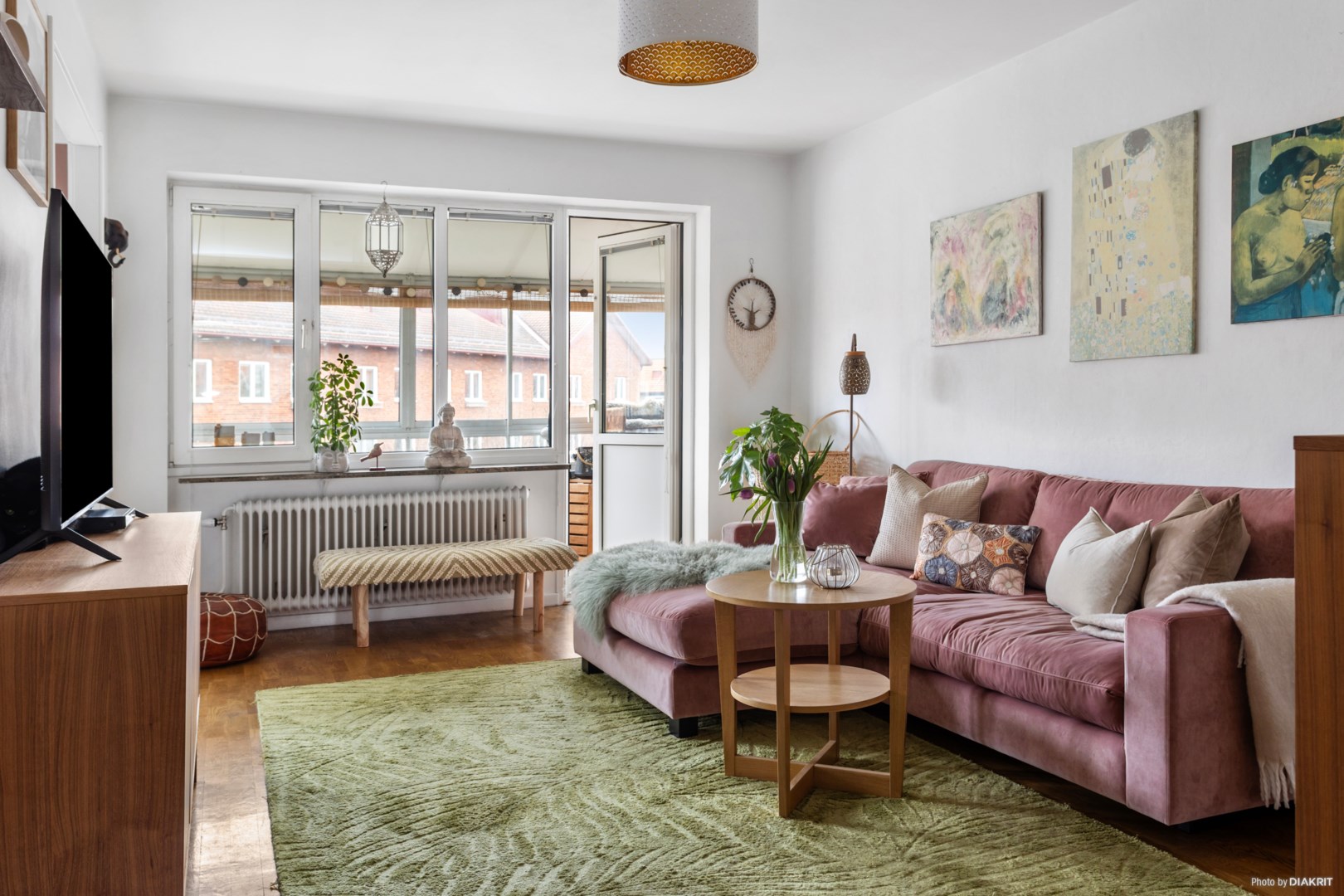 Högst upp i huset med hiss från markplan finner vi denna genomgående tvårummare med inglasad balkong i västerläge. Vi erbjuds delvis öppen planlösning mellan det fint renoverade köket och det trevliga vardagsrummet vilket ger en härlig social yta. 2 rum varav 1 sovrum I området råder