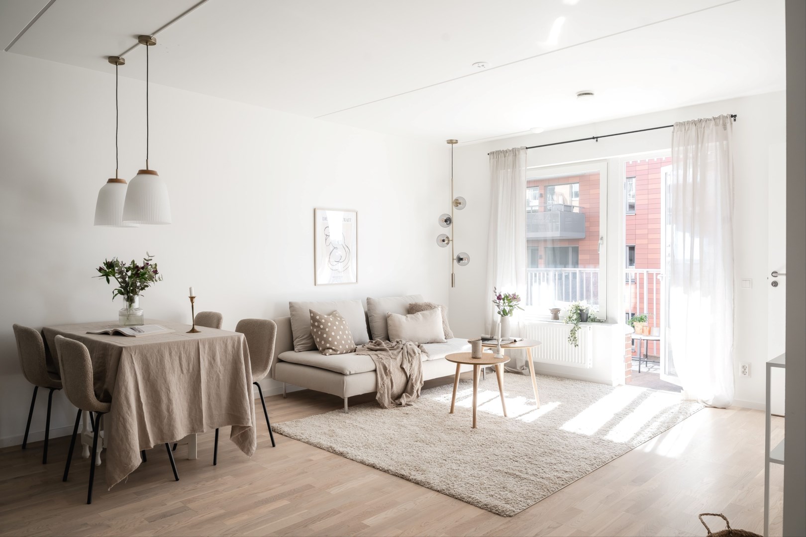 Öppen planlösning Enhetlig interiör Stor balkong i solläge Fantastiskt ljusinsläpp Kök från Marbodal Stort helkaklat badrum med mycket förvaring Lyxiga & genomtänkta materialval Påkostade tillval Väl tilltaget sovrum med platsbyggda garderober Walk-in-closet Goda