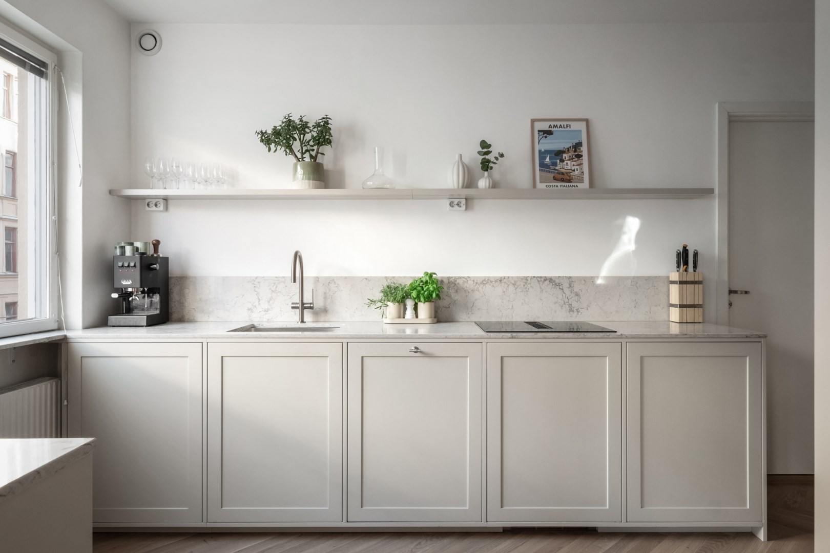 - Nyrenoverat Garage i huset (ingen kö + kort väntetid!) - Alla större renoveringar gjorda Här möter klassiskt det moderna med öppen spis, burspråk och genomgående fiskbensparkett Redan vid entrén möter ni de genomgående stilfulla detaljerna och de sobra kulörtemat. Fiskbensparketten