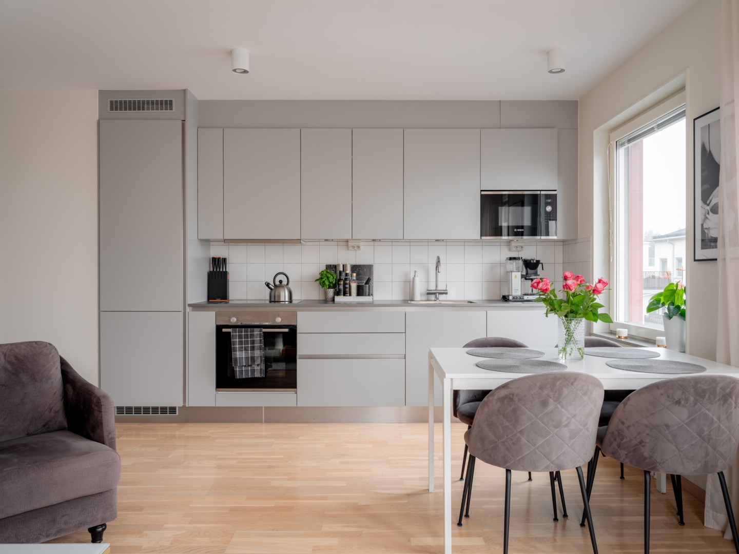 Kontakta mäklaren för visning! Högst upp i huset har ni nu chansen att bli ägare till den här välplanerade tvåan i Brf Dagsmejan. En helt nyproducerad lägenhet med exklusiva material, stilren design och maximal komfort. Hela lägenheten har smakfull färgsättning och gedigna materialval. Köket
