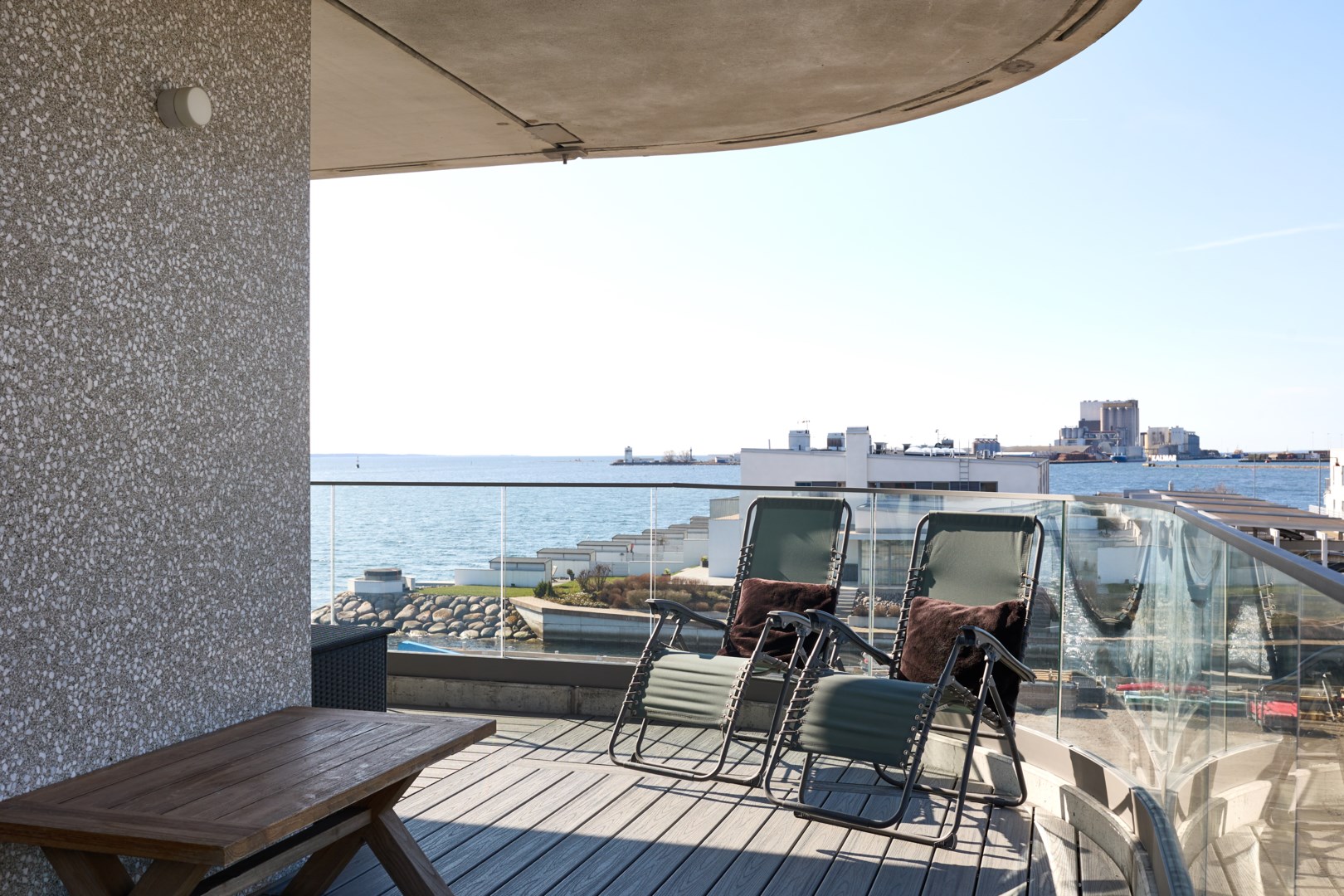 Bo med havet som närmsta granne på Jeanssongatan 15. Den rymliga balkongen på 44 kvadratmeter är unik i Kalmar och bjuder på sol från lunch till solnedgång – en plats att verkligen njuta av. Lägenheten är en genomtänkt tvåa på 55 kvadratmeter med en öppen planlösning som låter ljuset flöda genom