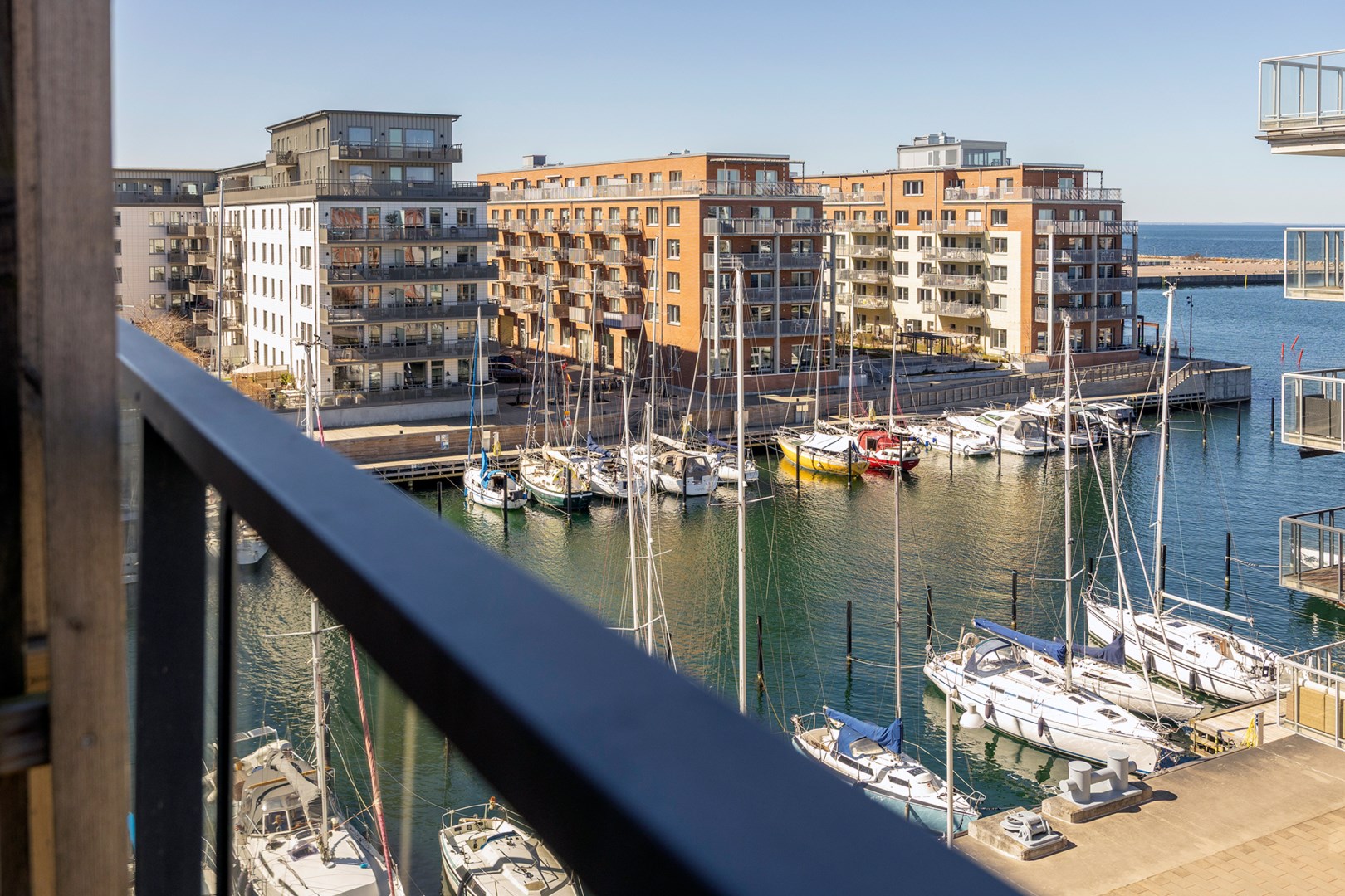 Välkommen till en våning med magisk sikt över hav och småbåtshamn. Det är en stilla vårdag vid Dockan och vattnet ligger alldeles spegelblankt. Fem våningar upp på Krankajen 30 väntar 54 påkostade kvadratmeter med en öppen, social planlösning. Fönster på rad bjuder in havets blå toner och utanför