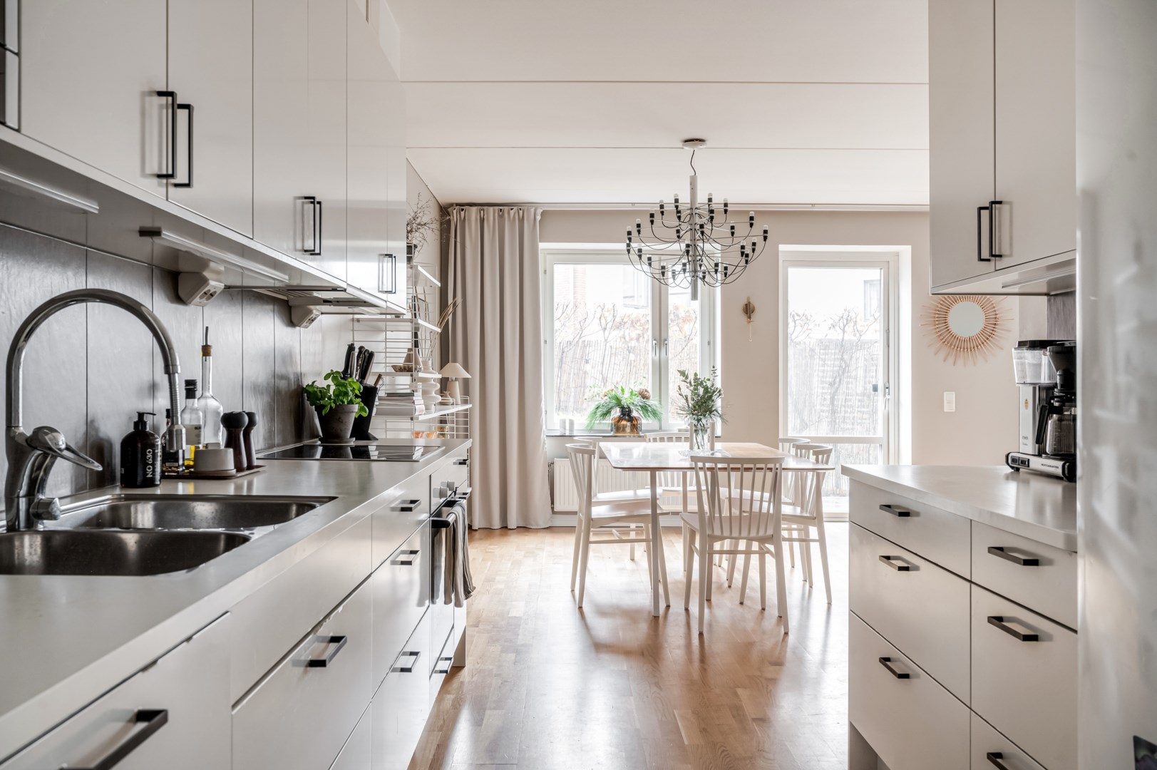 När du kliver in i bostaden möts du av den generösa och välkomnande hallen. Här finns gott om plats för avhängning, inte minst tack vare de rymliga garderoberna som elegant ramar in entrén. Från hallen öppnar sig det moderna och välutrustade köket. Här återfinns diskmaskin, induktionshäll, ugn