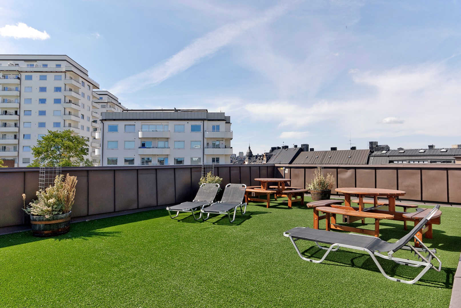 Kök och badrum renoverades 2016 Solig balkong Tunnelbana direkt utanför porten Stabil förening från 30-talet Fönster i två väderstreck Fritt läge Generöst ljusinsläpp Öppen planlösning God förvaring Källarförråd tillhör lägenheten Gemensam takterrass Övernattningsrum Ytterst