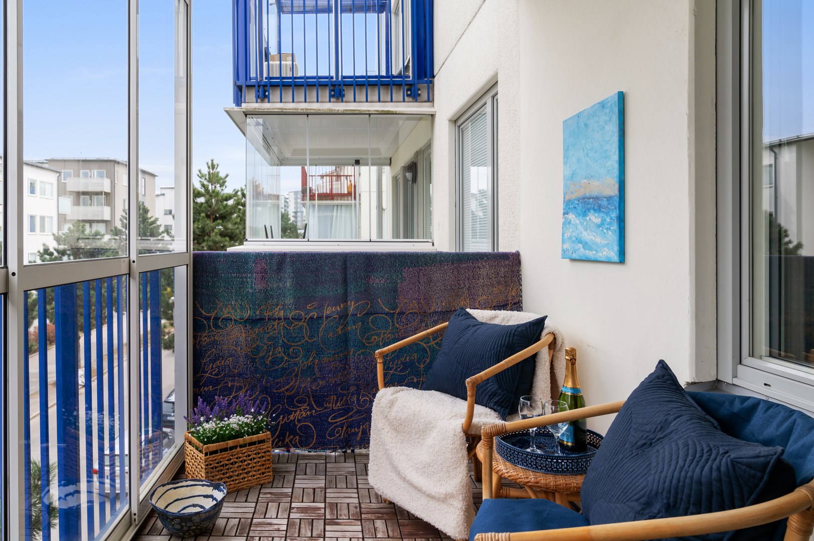 * Yteffektiv och välplanerad tvåa med social, öppen planlösning * Rymlig inglasad balkong i lugnt läge med härlig morgon- och förmiddagssol * Låg avgift * Stilrent kök i vitt med gott om förvaring och arbetsytor * Ljust vardagsrum med stora fönsterpartier * Helkaklat badrum med golvvärme,