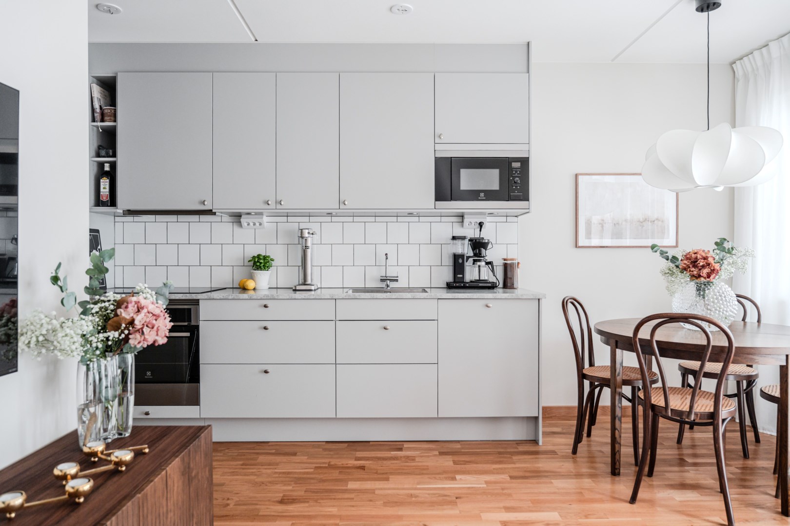 Välkommen hem till en ljus och trivsam bostad i toppskick! Här möts du av en modern lägenhet med genomgående stilrena materialval och en planlösning som skapar både rymd och harmoni. Hallen erbjuder praktisk avhängning och gott om förvaring i garderober. Det öppna sambandet mellan vardagsrum och