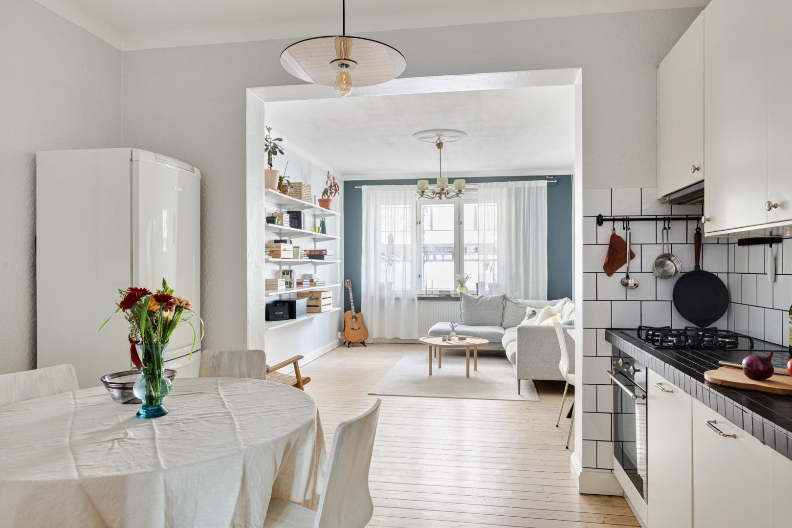 Varmt välkommen till denna genomgående bostad med bevarade detaljer från byggnadsåret och en yteffektiv planlösning med socialt kök med matplats. I vardagsrummet finns plats för soffgrupp och i köket ryms matbord. Bostaden har en ljus planlösning med fönster som vetter mot innergården och lugna