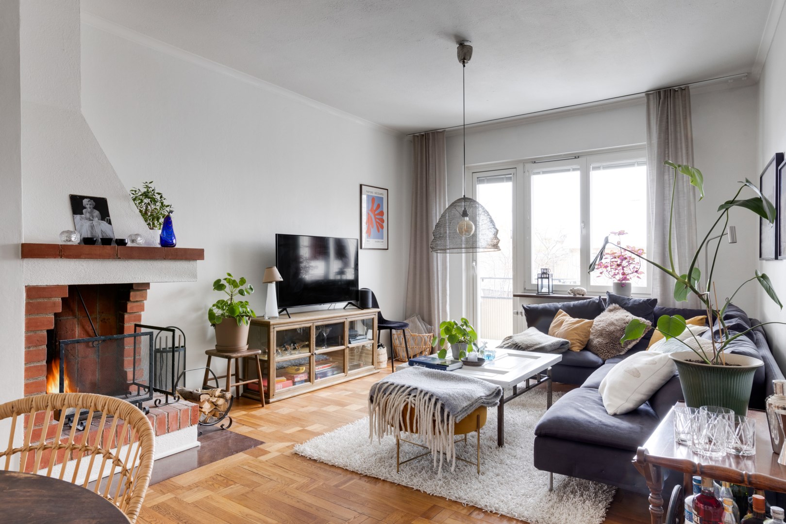 Lägenheten välkomnar dig med en ljus och rymlig hall med god förvaring. Det öppna och moderna köket, komplett med en stor köksö, utgör bostadens hjärta – perfekt för både vardagsliv och sociala tillställningar. Köket är fullt utrustat med moderna vitvaror och erbjuder generösa