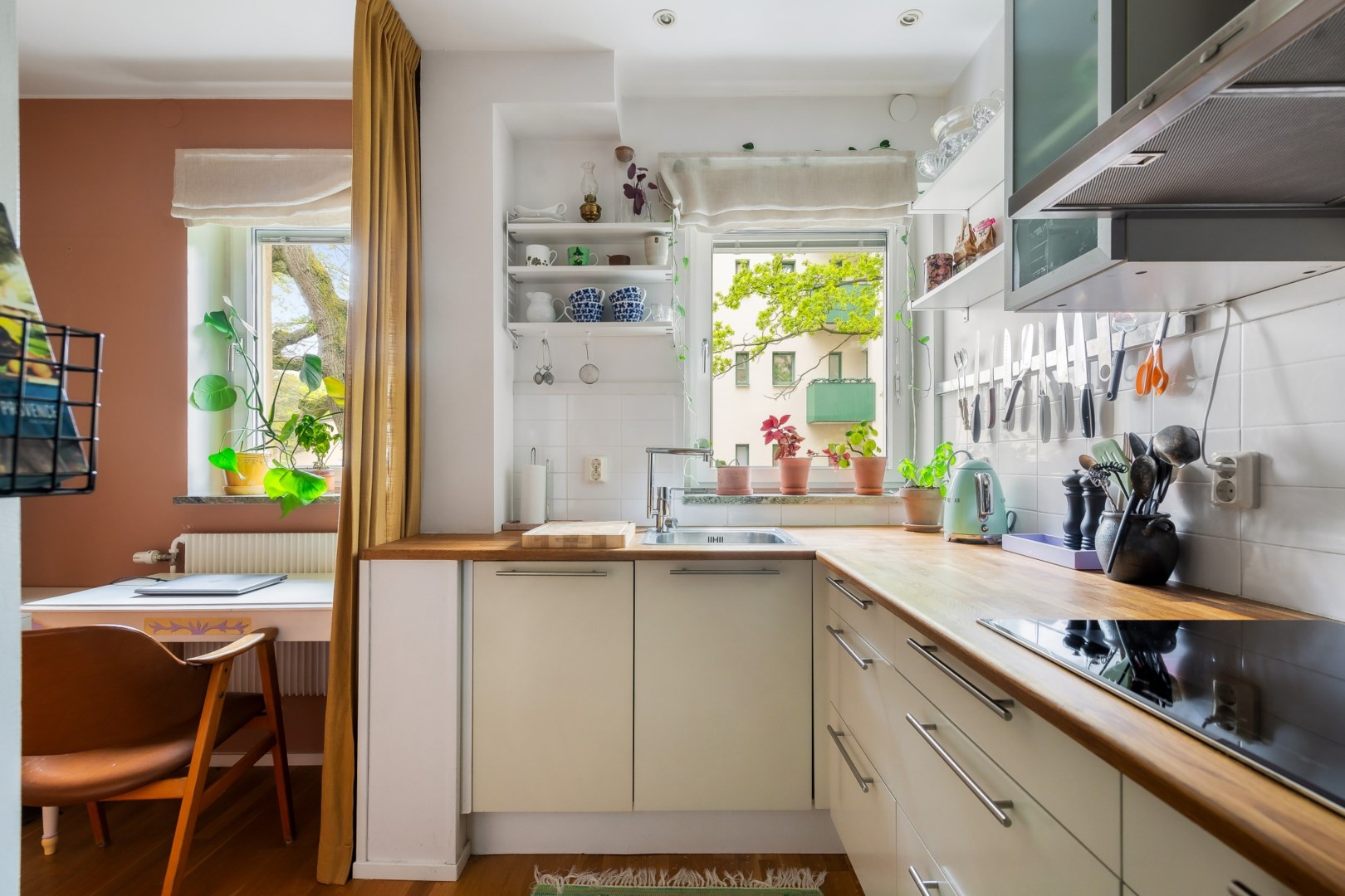 Välkommen till en charmig och smart planerad tvåa med separat hemma kontor! * Avskild hemma kontor! * Tillhörande förråd! * Endast 1 814 kr/kvm i lån! * Nära Alviks torg! En sällsynt möjlighet att förvärva en tvåa med unik planlösning i Traneberg! Här möts du av ett ljust och luftigt