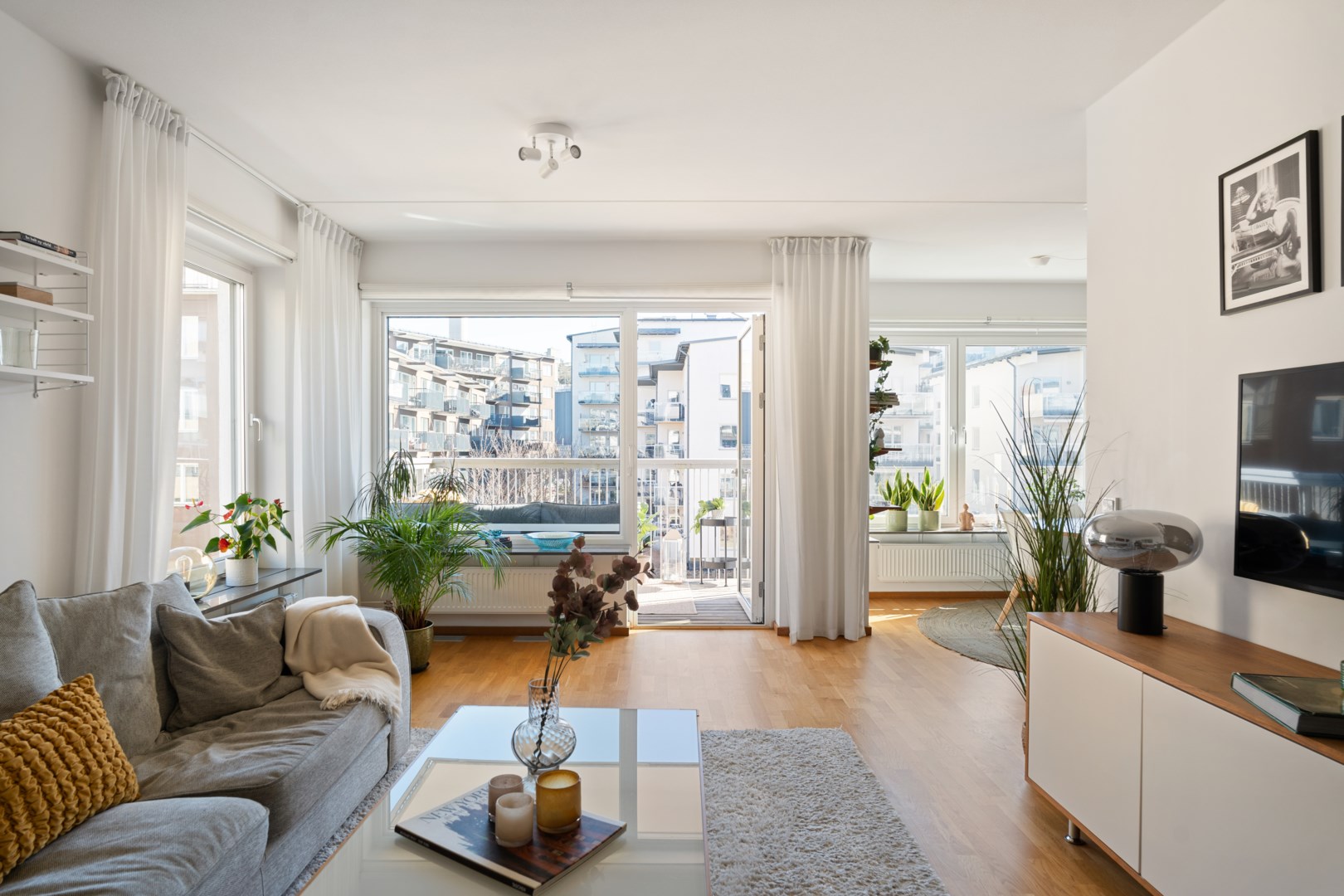 Välkommen till denna ljusa och välplanerade 2:a med balkong i högt läge mot grönskande gård med härlig förmiddagssol. Hörnläget i kombination med stora fönsterpartier förser bostaden med ett härligt ljusinsläpp från två väderstreck. Lägenheten erbjuder luftiga sociala ytor med öppen planlösning