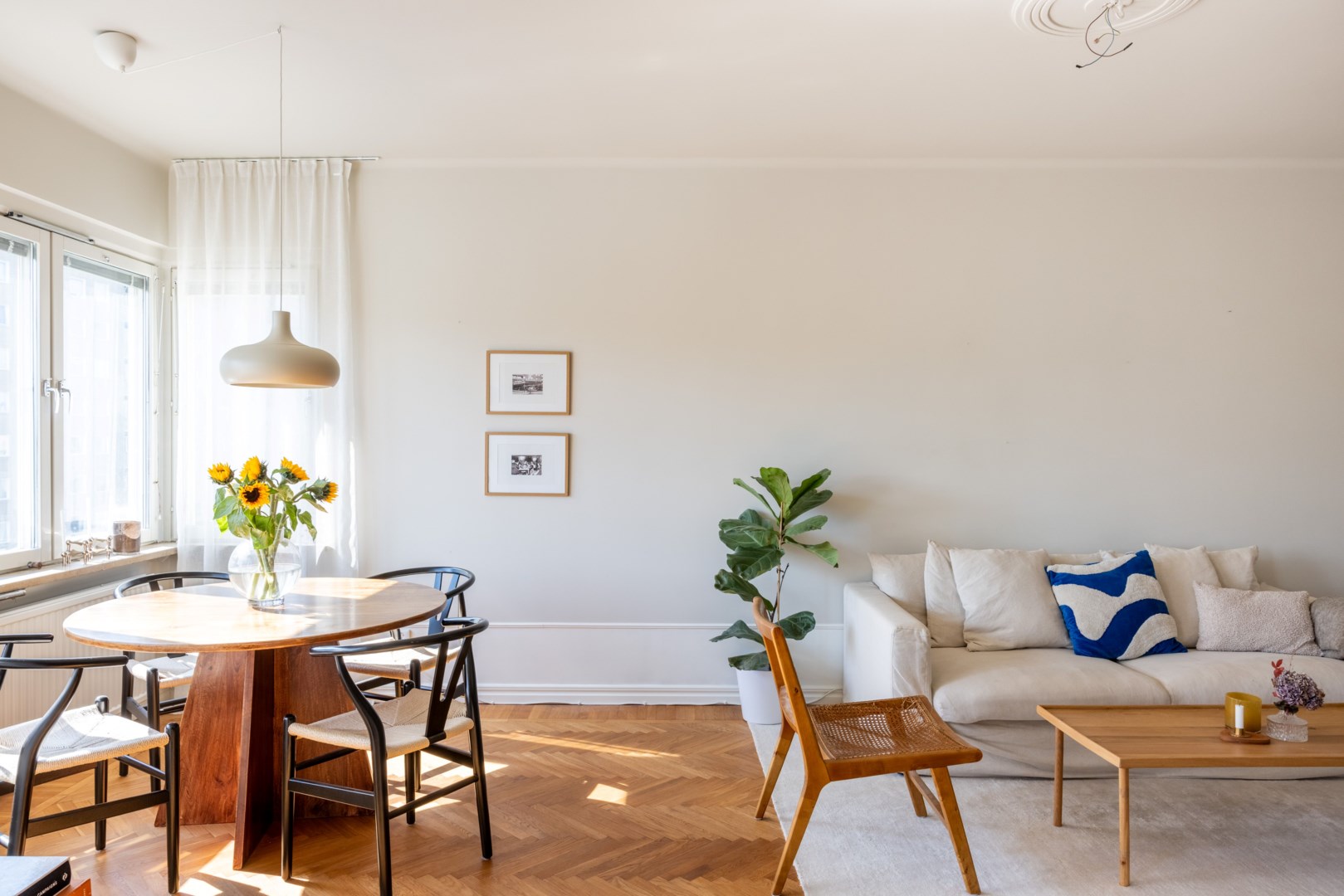Totalrenoverad 2023 Öppen planlösning Balkong med förmiddagssol Klassisk fiskbensparkett Exklusiva materialval Tilltagen takhöjd Generös sällskapsyta Dekorativa lamprosetter Lyxigt badrum Hiss finns Två takterrasser i Brf Intill Kronprinsen Gångavstånd till City Nära hav & strand