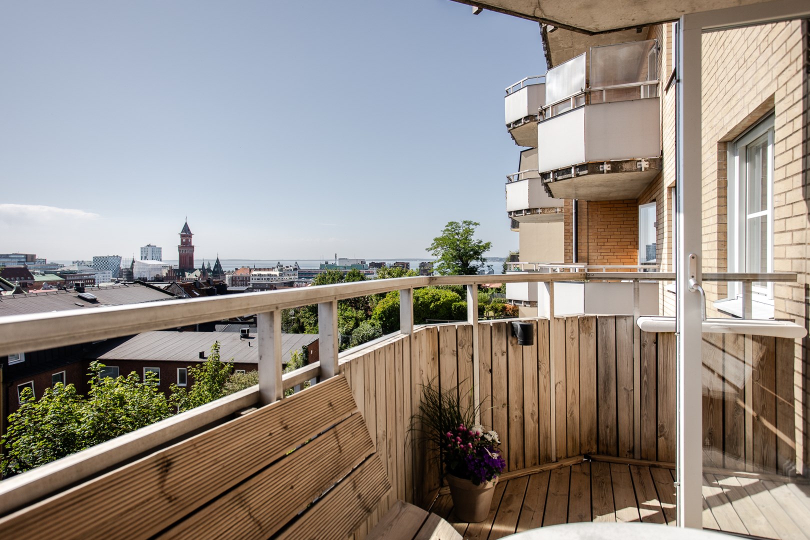 MÖJLIGHET ATT HYRA GARAGE, HISS FRÅN MARKPLAN, STOR BALKONG MED MAGINFIK UTSIKT OCH TOPPRENOVERAT! Synnerligen topprenoverad tvåa med magnifik utsikt över stadens takåsar och Öresund. Här bor man på tredje våningen (hiss från markplan) med stor balkong smt möjlighet att hyra garageplats! I en