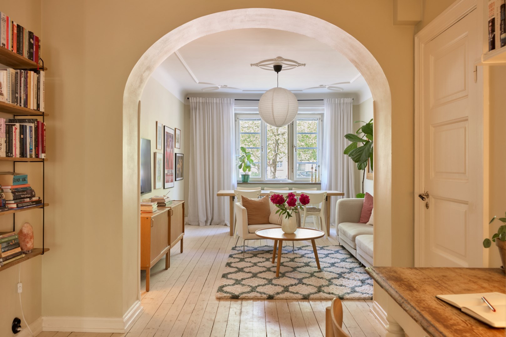 Ljumma vindar drar in över Sankt Knuts kvarter, en ljuvlig grönska ramar in det kullerstensklädda torget som fylls av människor, liv och rörelse. Det är så levande gator! Alldeles intill torget väntar 63 vackra kvadrat med utsikt över torget. Fönstren står öppna i denna trettiotalsvåning som breder