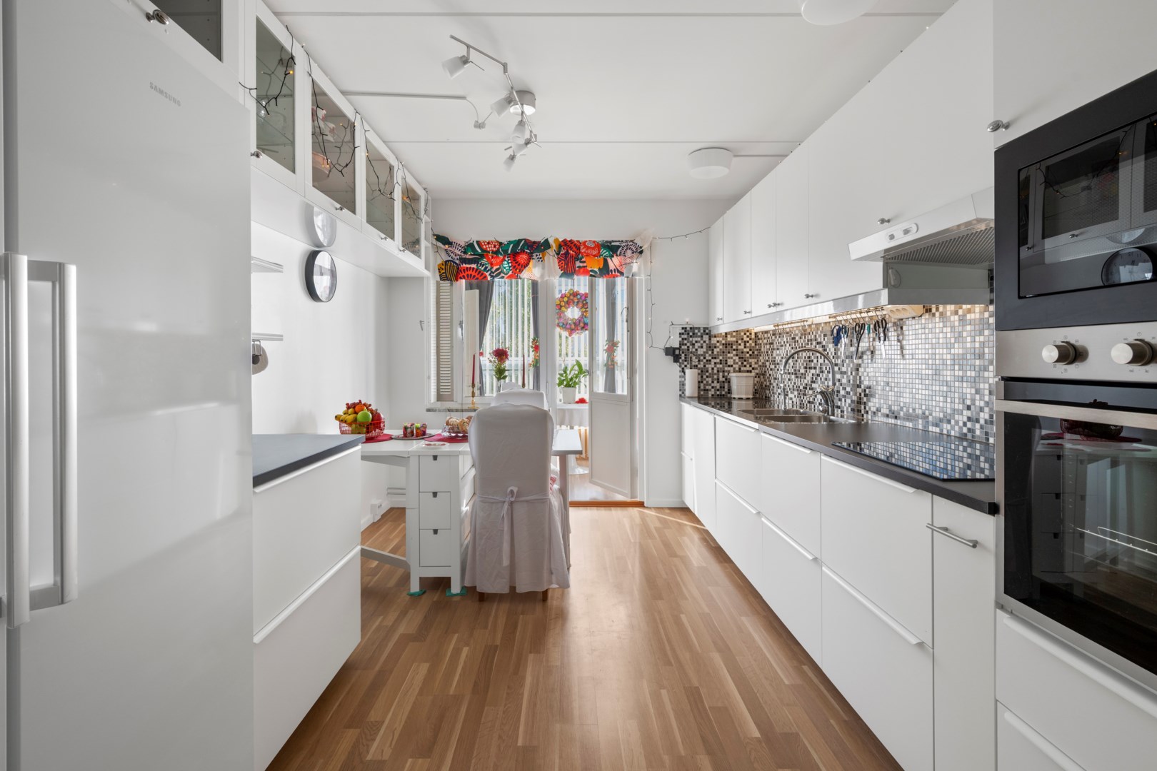 Här på gröna Apelgården möts vi i Brf Idas mest citynära hus av denna totalrenoverade 2:a med uppöppnat och förstorat kök, förstorat badrum med bra plats för tvättpelare och nya ytskikt i samtliga rum. 2 rum och Kök Föreningarna har såväl p-platser som garage. Gatuparkering med p-skiva finns
