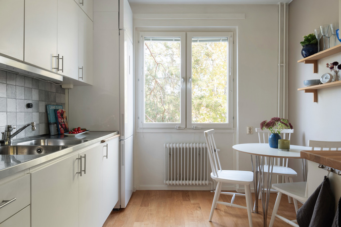 På lugn och grönskande gata finner du nu denna mycket välplanerade tvåa till salu! Lägenheten har fönster i två väderstreck vilket skapar ett fint ljusflöde genom rummen. Vardagsrummet är lättmöblerat och rymligt och såväl här som i köket finns det plats för matbord. Balkongen nås från vardagsrummet