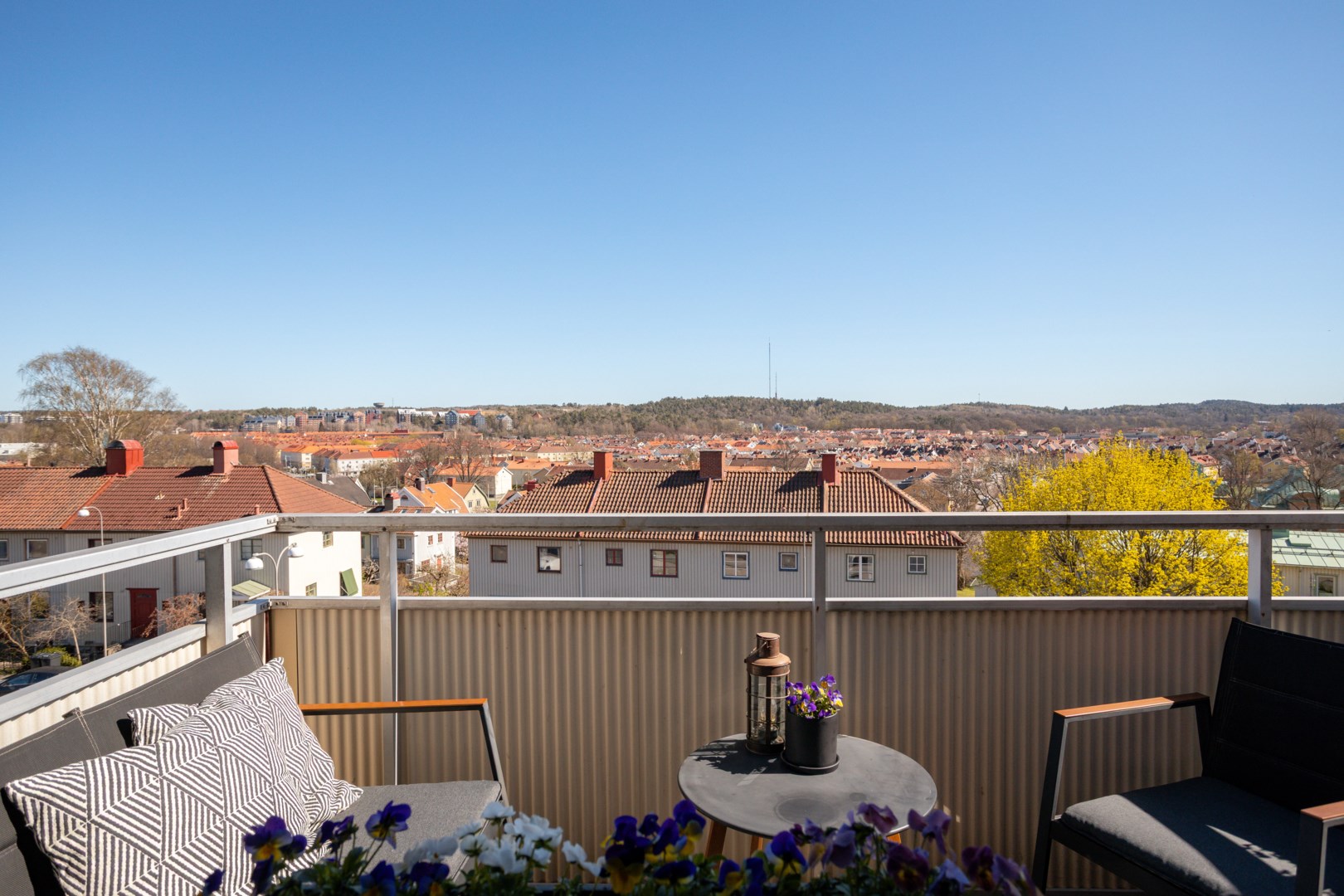 Välkommen till denna ljusa och välplanerade tvåa, belägen högst upp i huset med ett fantastiskt läge och en utsikt som verkligen imponerar. Här bor du med ett insynsskyddat läge och en fri vy över takåsar och stad. Här bor du insynsskyddat med en vidsträckt vy över takåsar och stad, i en stabil