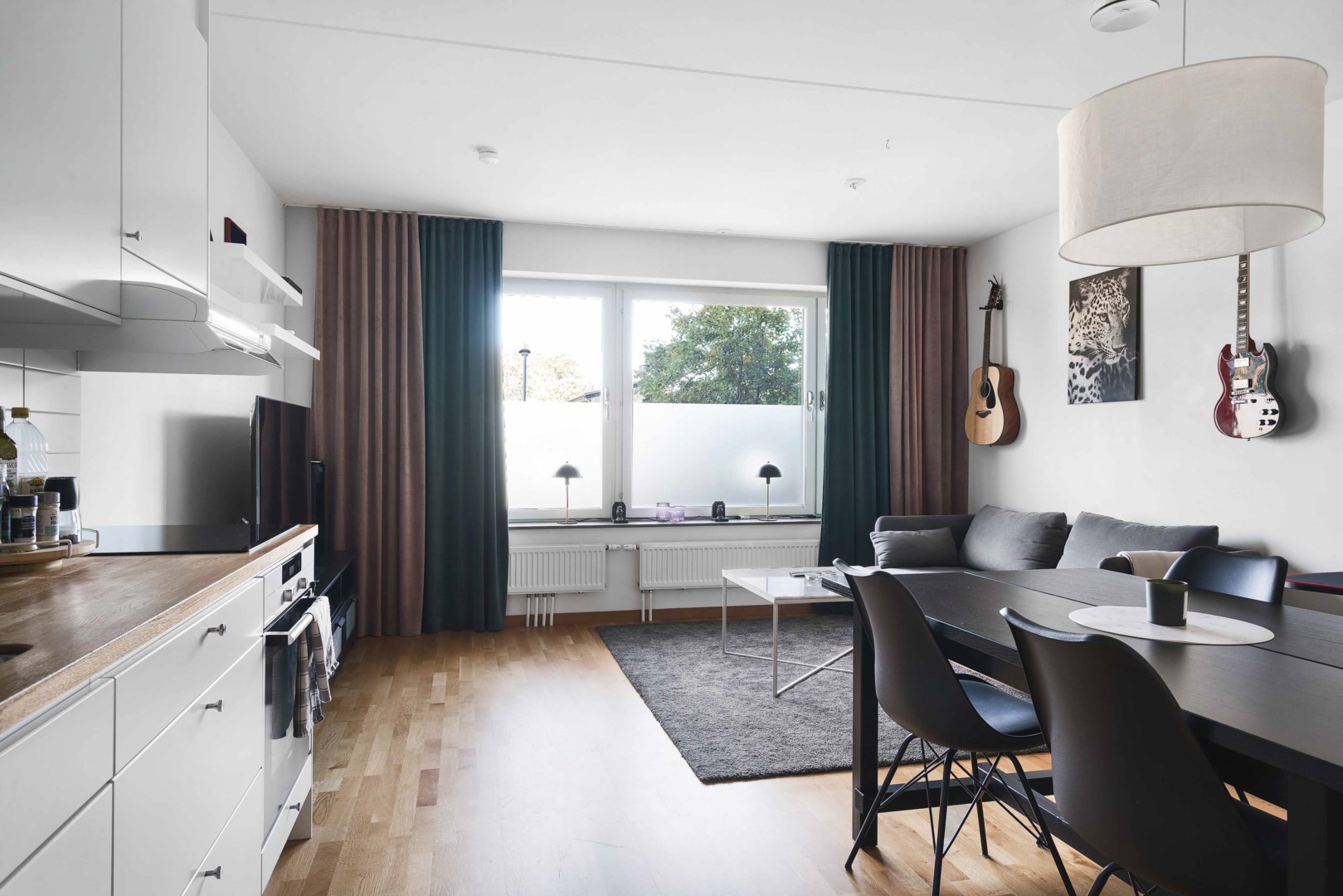 Välkomna till Solskensgatan 19 och detta ljusa och yteffektiva boende med vita väggar och ett genomgående fint parkettgolv. Hallen har utmärkt förvaring i ett flertal garderober samt längre in finner ni ett bra planerat arbetskök även utrustat med diskmaskin. Köket ligger i öppen planlösning mot