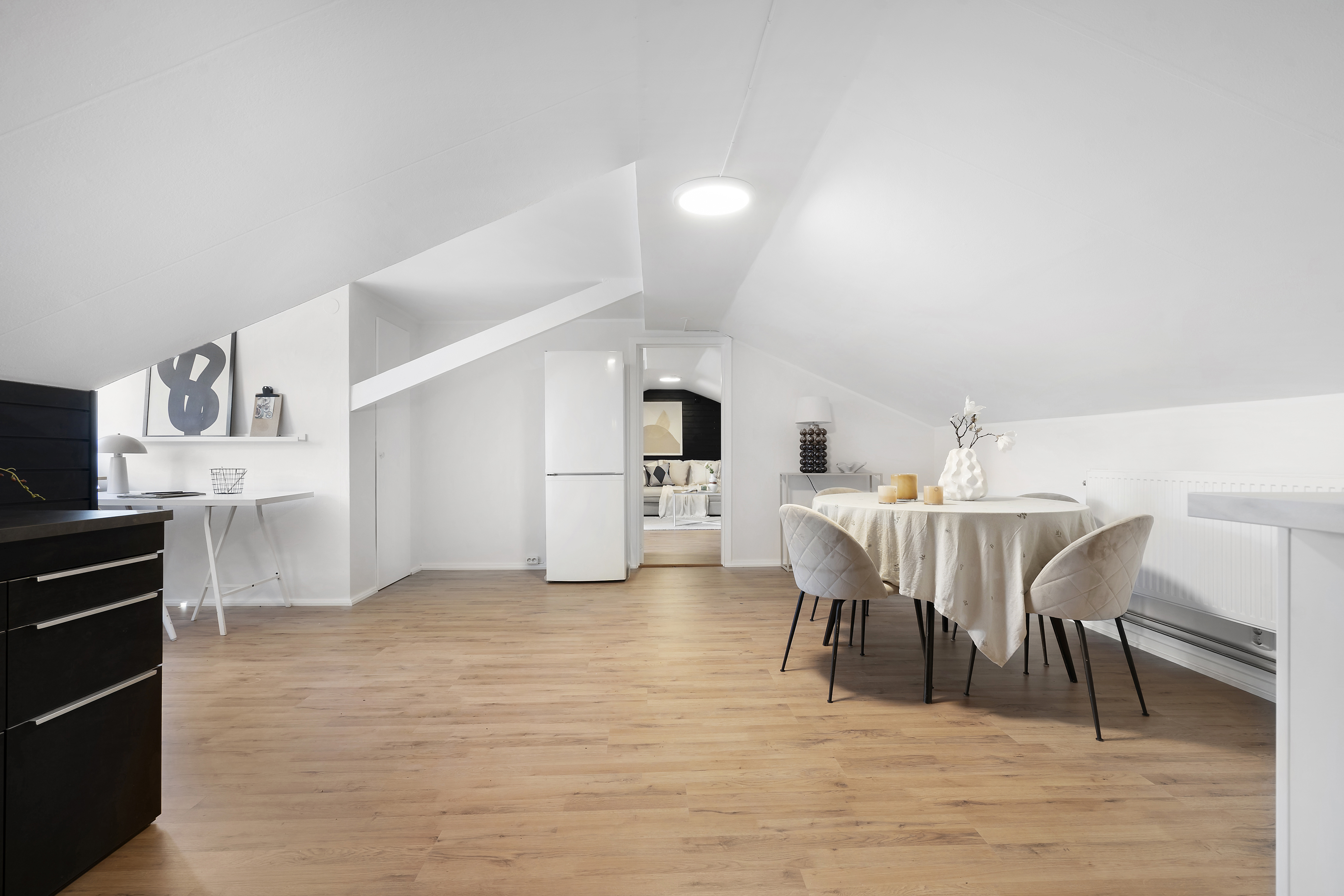- Juridisk person får köpa - Övernattning, deltidsboende ok - Högst upp - Renoverat badrum - Rymliga rum Charmig vindslokal om 59 kvm med rymliga rum och renoverat badrum samt ytskikt samt del av kök. Välkommen till denna ljusa och luftiga vindslokal om 59 kvm. Lokalen/Lägenheten erbjuder