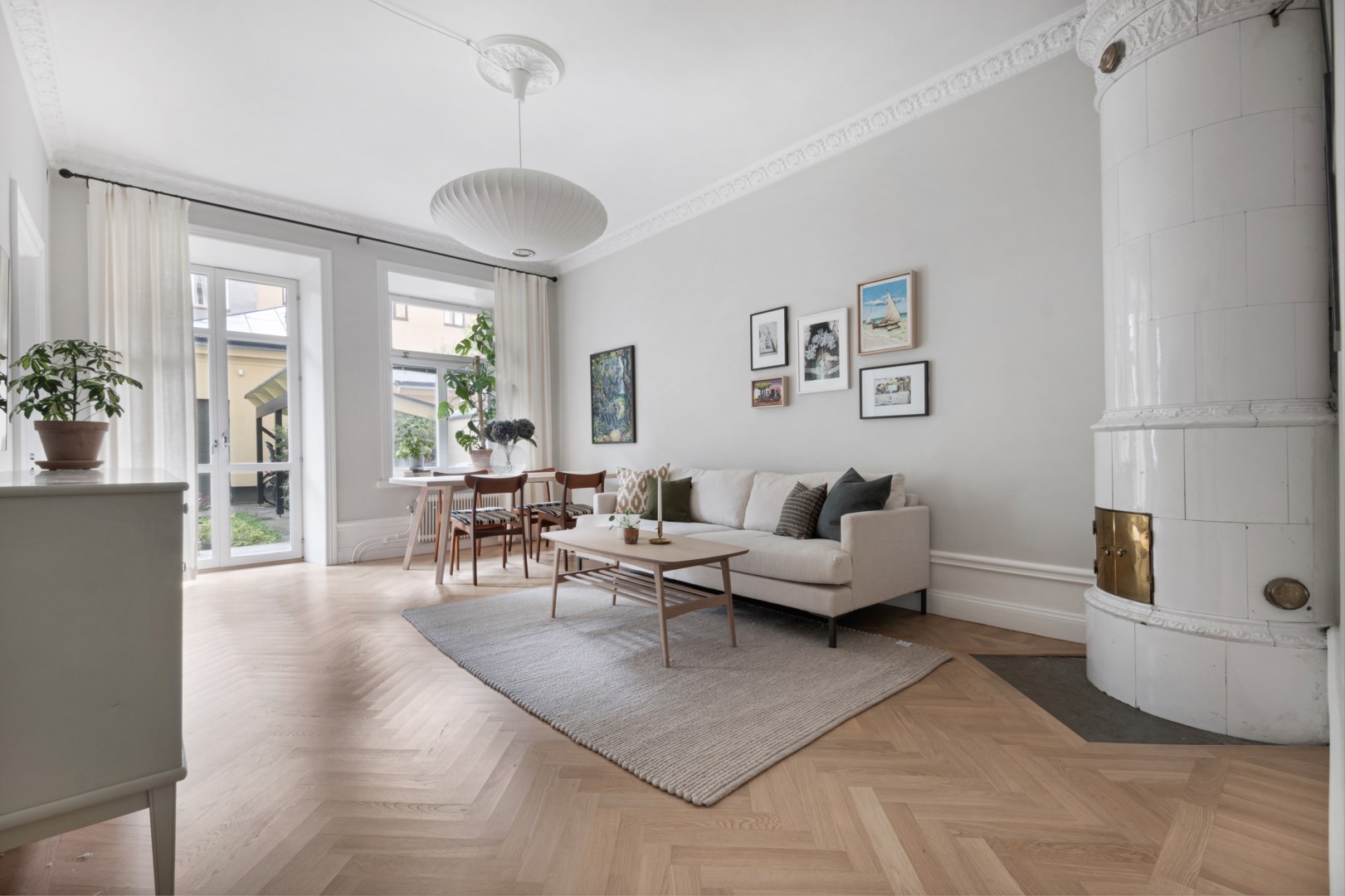 Välkommen till denna stilrena och charmiga 2:a om 59 kvm med fönster mot husets lummiga baksida i en vacker fastighet anno 1897. Här finns oslagbara sekelskiftesdetaljer bevarade såsom fungerande kakelugn, höga golvsocklar, stuckaturer i tak, takrosett, stora fönster med breda djupa fönsternischer