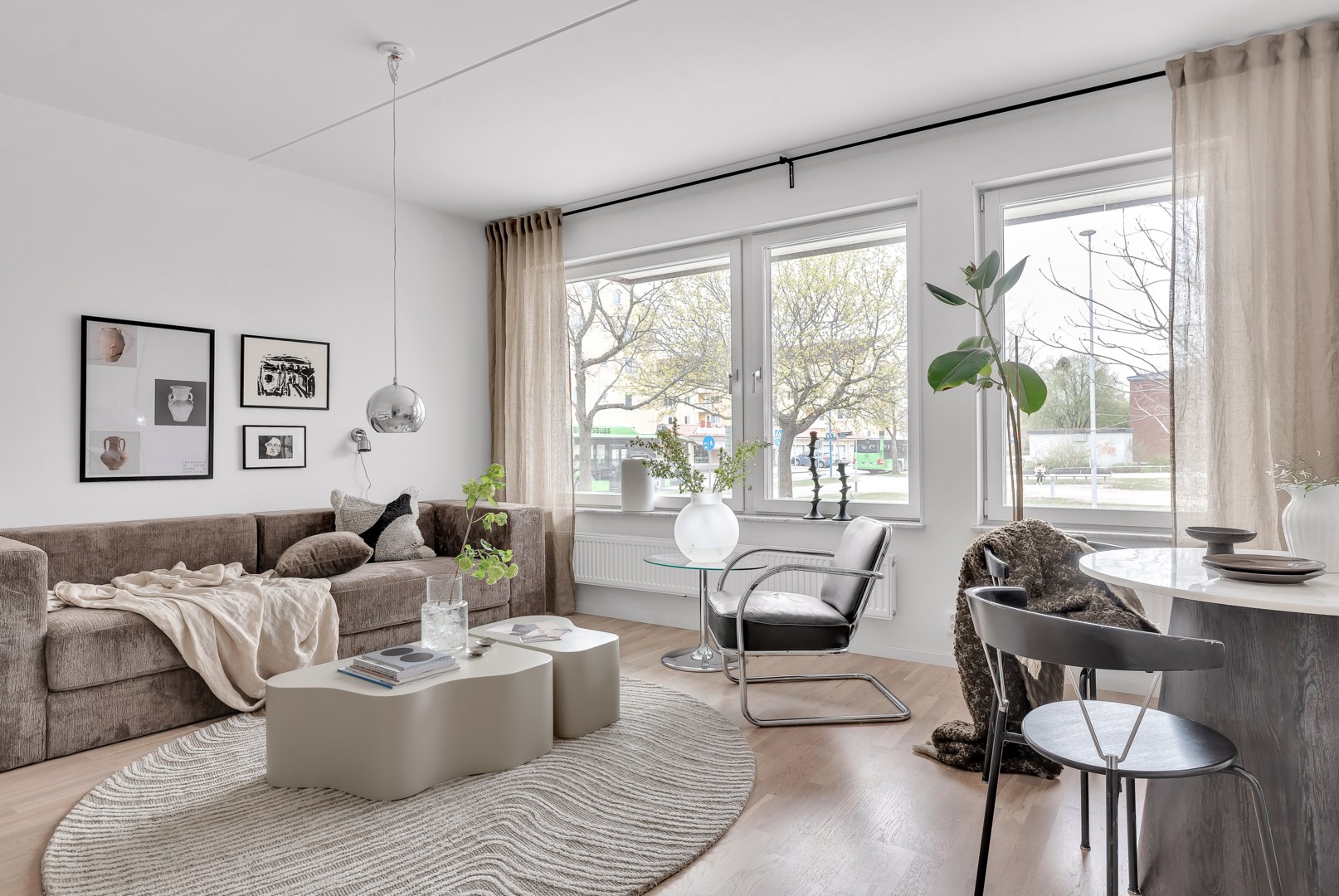 Välkommen till en modern och yteffektiv tvårummare med egen entré och uteplats mot lugn innergård – perfekt för härliga stunder utomhus under årets varmare månader. Öppen planlösning mellan kök och vardagsrum skapar en social och inbjudande yta med plats för både vardag och fest. Genomgående