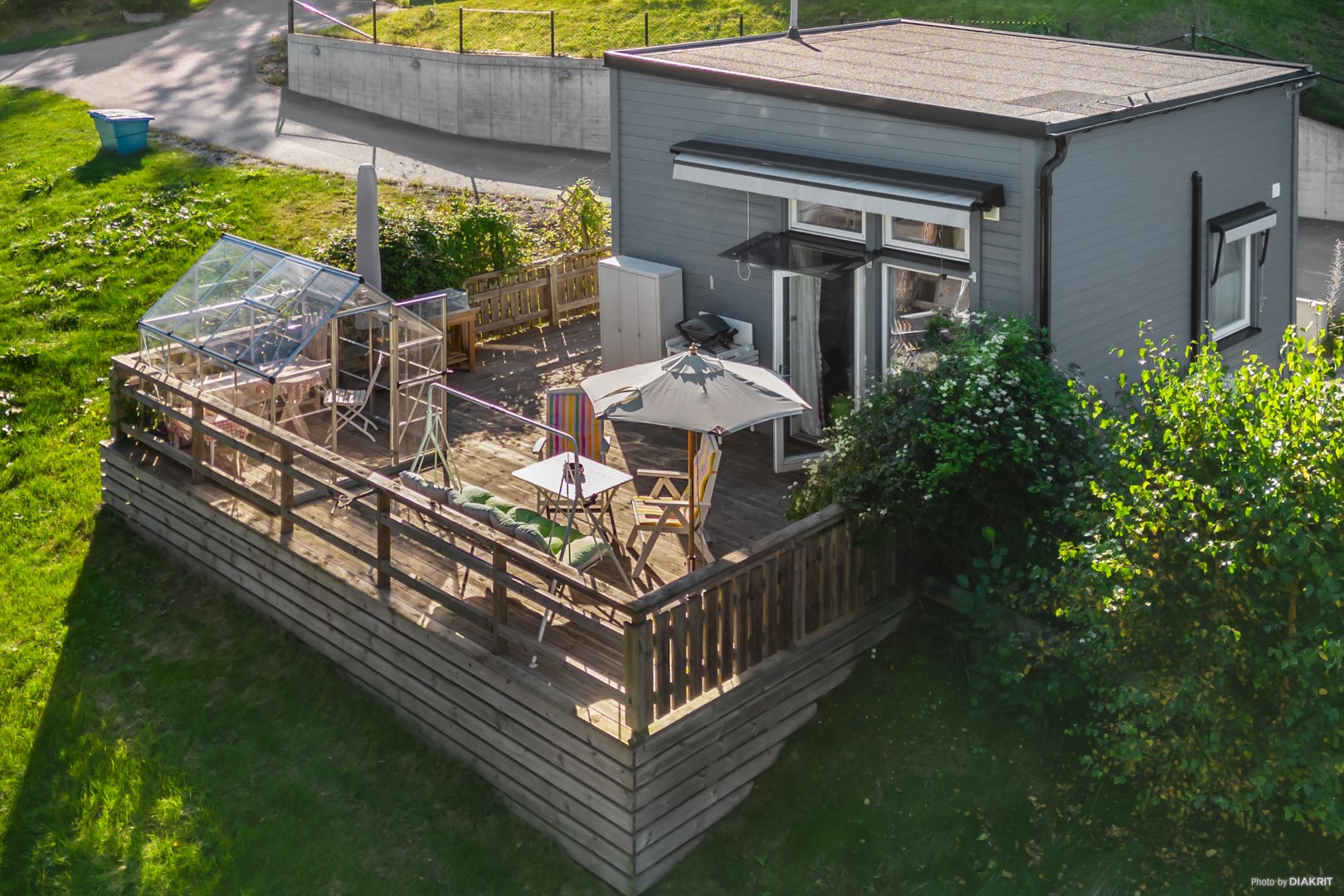 På en attraktiv adress i populära Kolvik och ett stenkast från vattnet finns detta moderna och smakfulla bostadsrättshus, fristående i ett plan med sovloft. Bostadsrättshuset, som är byggt 2016/2017, ligger högt placerat intill en barnvänlig och lugn återvändsgata som löper längs med kanalen som