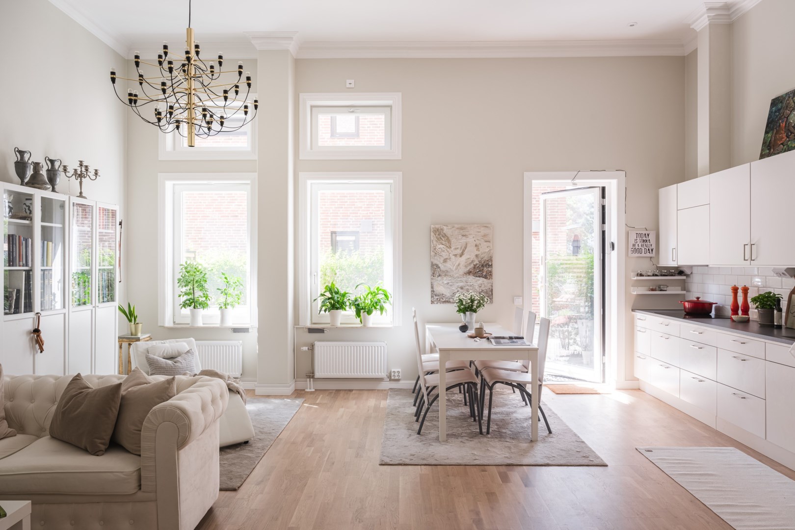 I en klass för sig med otroliga 3.90 m i takhöjd presenterar vi denna unika lägenhet som verkligen andas livskvalitet. Hjärtat i lägenheten är helt klart köket med dess öppna planlösning till såväl matplats och vardagsrum och lägenheten känns betydligt större än sina 61 kvm. Här kan man bo med