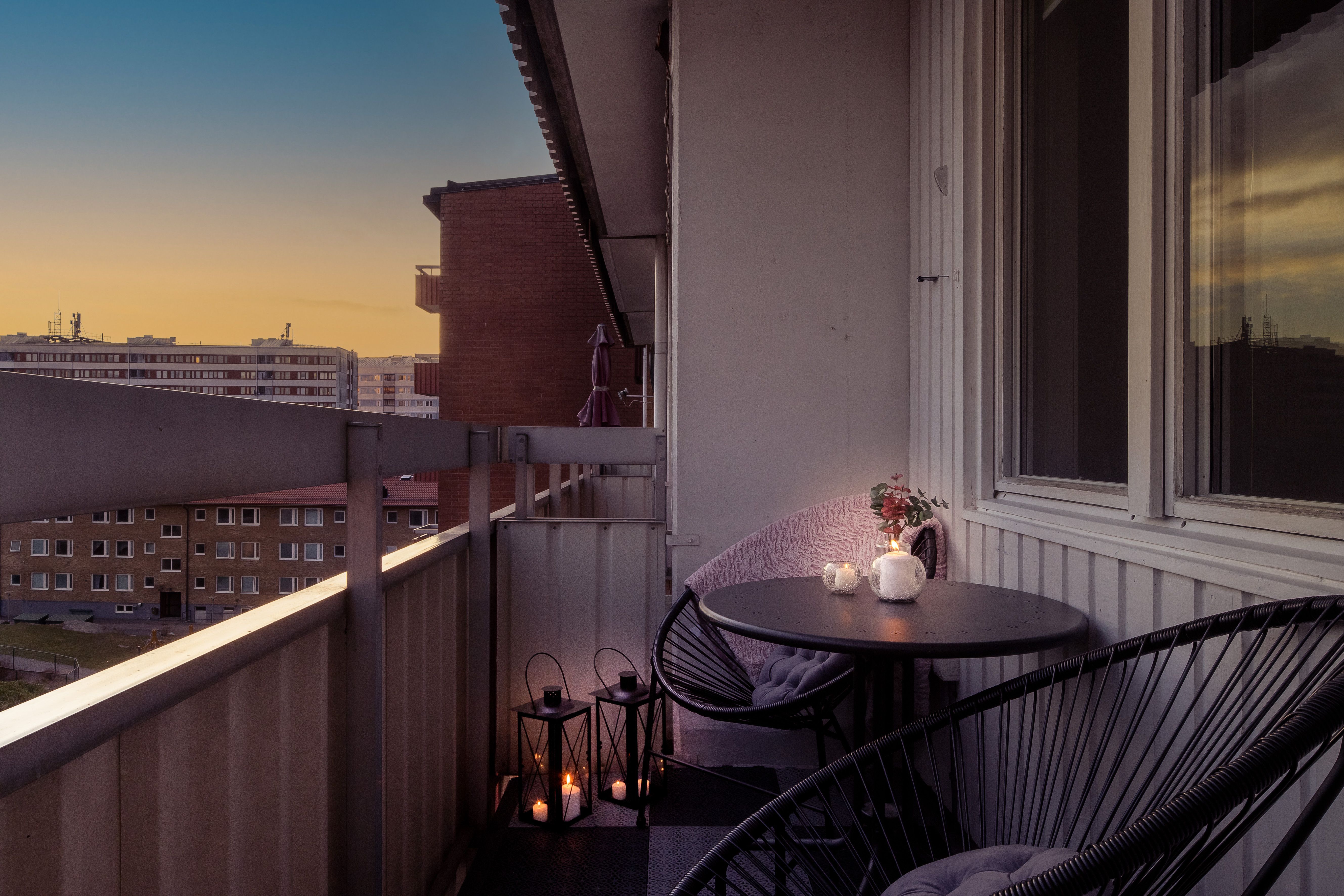 Enastående balkong med fantastiskt ljusinsläpp från flera håll, samt panoramautsikt över Göteborg och ovan takåsarna i väster. Gott om plats för loungemöblemang och en underbar plats att avnjuta utsikten samt bjuda in till såväl brunch som middagar. Här är du omgiven av allt du behöver med
