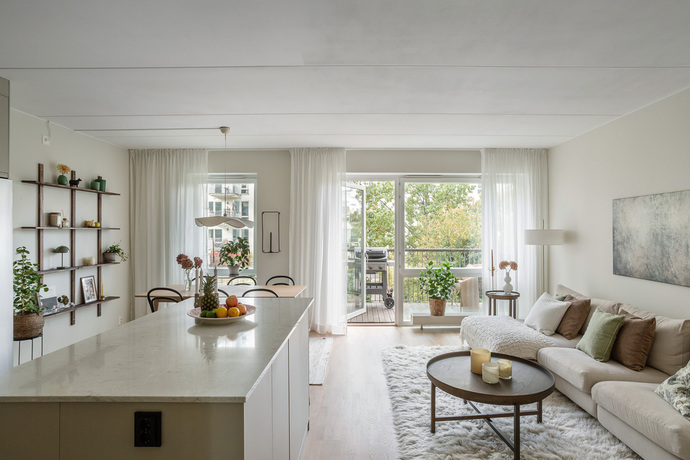 Ljus och stilren 3:a med öppen planlösning, balkong och dubbla badrum – möjlig 4:a! Redan i hallen möts du av en ljus och inbjudande atmosfär som genomsyrar hela bostaden. Nyslipade golv och nymålade ytskikt sätter tonen för en modern och fräsch helhet. Varje detalj är noga utvald och bidrar till