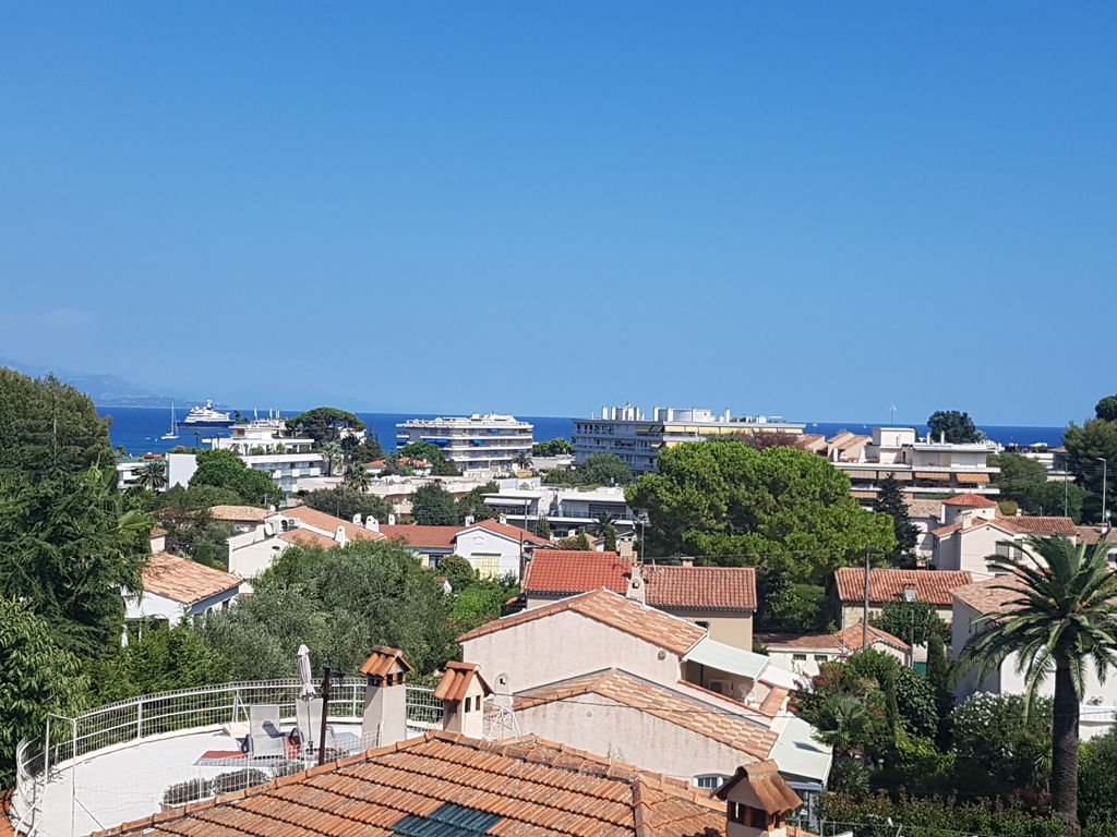 Antibes / Juan les Pins - Eftertraktat läge Fantastisk 3 rumslägenhet med bästa läge i början av Cap d’Antibes (Rostagne) Lägenheten ligger på en lugn gata i ett litet välskött residens med enbart 3 plan. Våningen ligger på plan 2 och är 84 kvm stor. Till detta tillkommer en terrass i vinkel på 34
