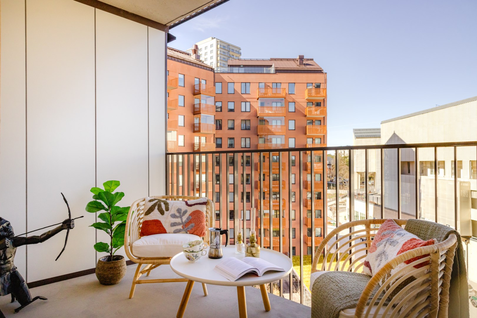 Välkommen till denna ljusa och välplanerade trea på våning 5 med inte mindre än två balkonger som förlänger bostaden och skapar härliga ytor att njuta av! Lägenheten har dessutom potential att enkelt göras om till en fyra för den som önskar ytterligare ett sovrum. Här erbjuds en bra storlek med ett