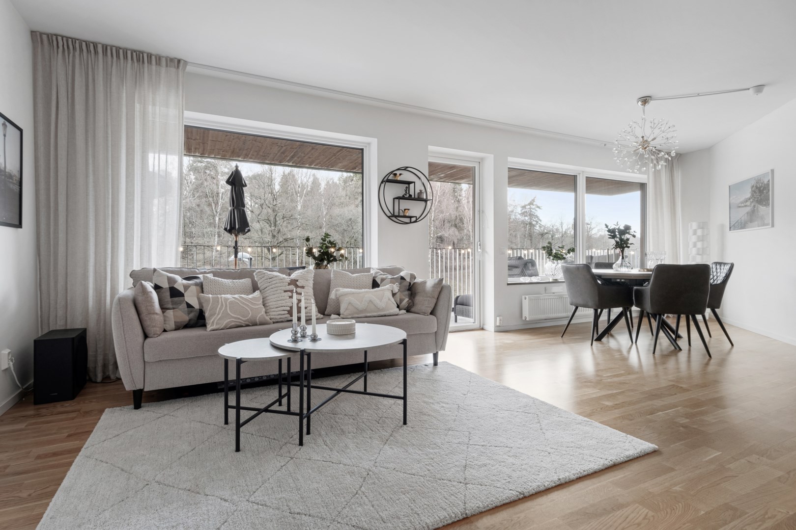 Varmt välkomna till denna unika 3:a med fri utsikt över Lill-Jansskogen. Underbart gavelläge med en stor hörnterrass om ca 30 kvm som sträcker sig längs hela lägenheten med eftermiddags- och kvällssol. Lägenheten är väldisponerad med härliga sällskapsytor i vardagsrummet, smakfullt kök med fina