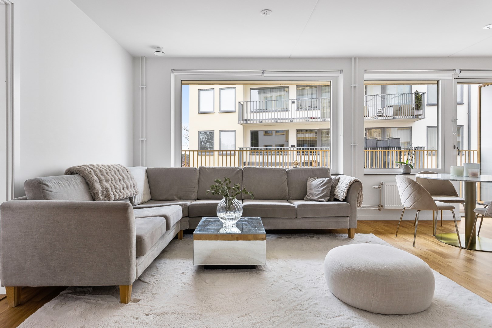 Här bor du i en öppen atmosfär med fönster i två väderstreck. Välkomnande hall med goda avhängningsytor. Fullutrustat och helkaklat badrum och välplanerat sovrum. Fantastiskt kök i stilrena färger och bra förvaring med flera materialval som lyfter bostaden ytterligare. Öppen planlösning mellan kök