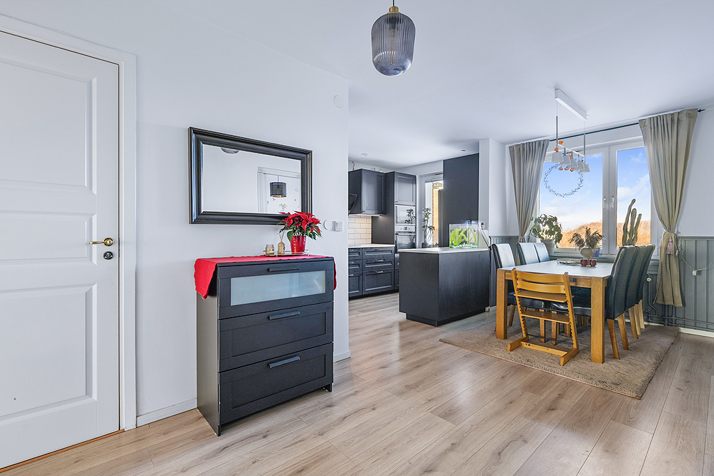 Trevlig under 2023 totalrenoverad 3:a i stabila BRF Burlövshus 1, som nås med hiss från bottenplan och inkluderar egen tvättstuga i tidigare gäst-wc'n Här på sjunde våningen är tack vare den genomgående planlösningen ljuset ständigt närvarande och utsikten fri. 3 rum och Kök Arlöv är huvudorten i