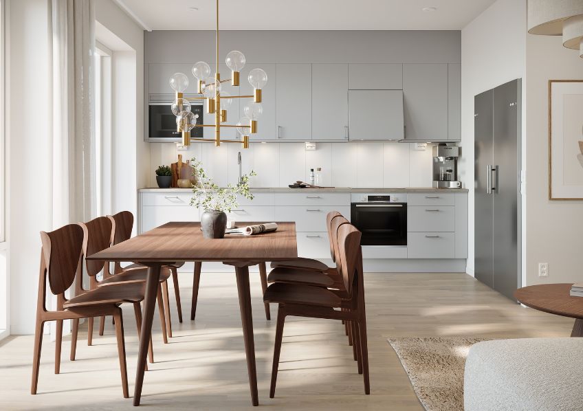 Ljus och välplanerad gaveltrea med fönster i tre väderstreck och generösa ytor där det sociala står i fokus. Från köket nås en uteplats med trädäck i olika nivåer om totalt cirka 30 kvm. En del av uteplatsen är inglasad, underbart att njuta på en sensommar eller tidig höst. Det finns även en