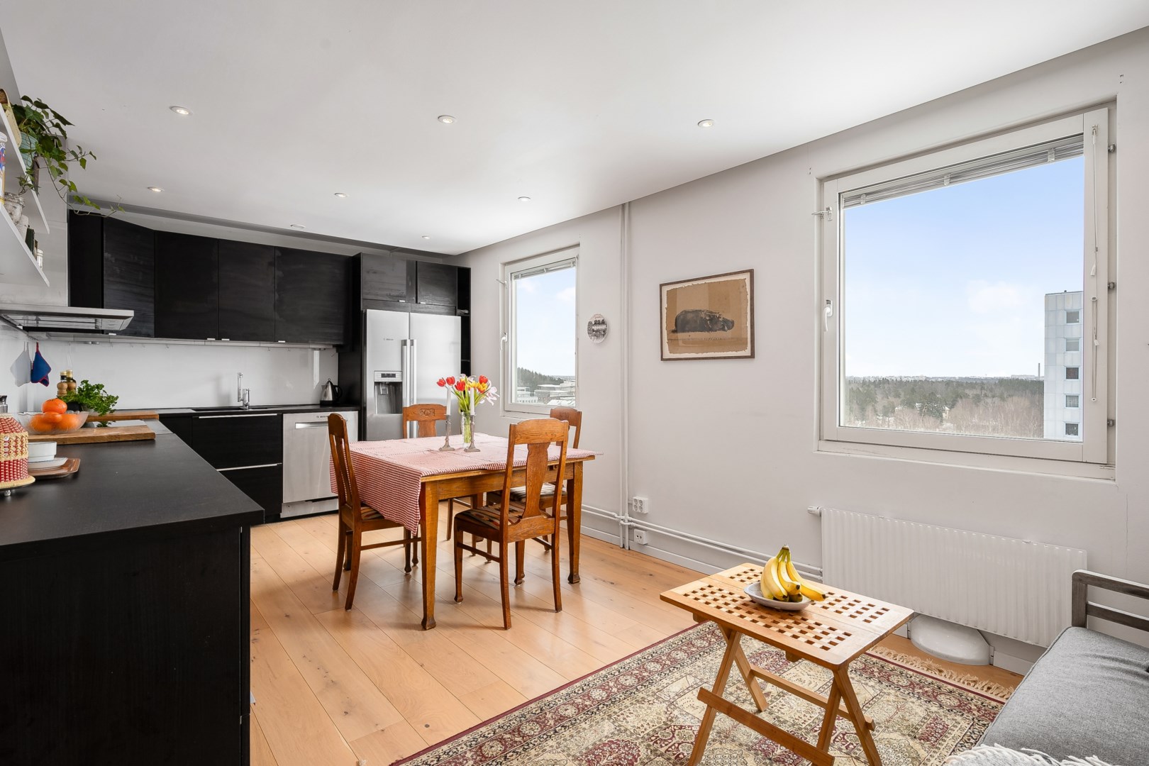 Välkommen till denna unika 3:a som sällan är till salu på vån 11 med ingen insyn och en milsvid utsikt. Det höga läget på våning 11 skänker en spektakulär och vidsträckt vy över grönskande och trivsamma omgivningar. Vältilltagen inglasad balkong i soligt läge med en fantastisk utsikt. Köket är
