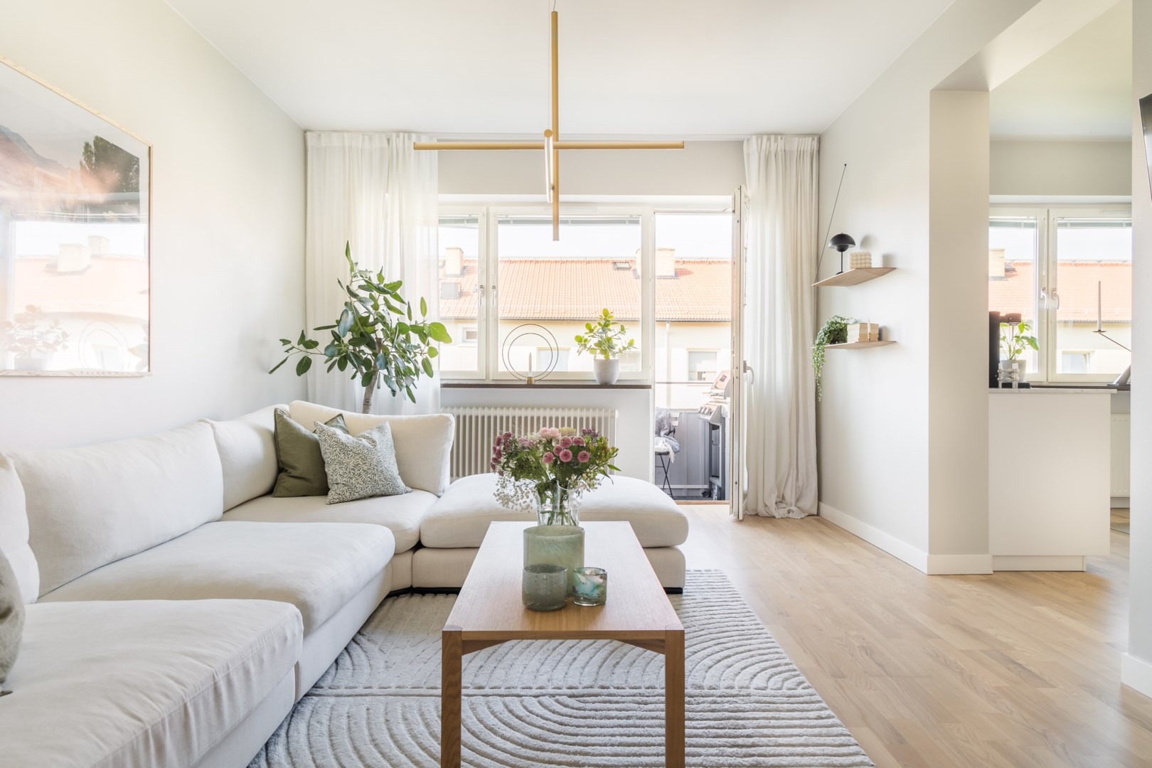 Västerbalkong mot innergård Högst upp i huset Härlig rymd Optimalt ljusinsläpp Ljus & modern interiör Alla bekvämligheter Sällskapsrum i fil Kvalitativa materialval Bra garderobsförvaring Badrum & gäst-WC Egen tvättstuga Trivsam innergård Utemöbler & odlingslådor
