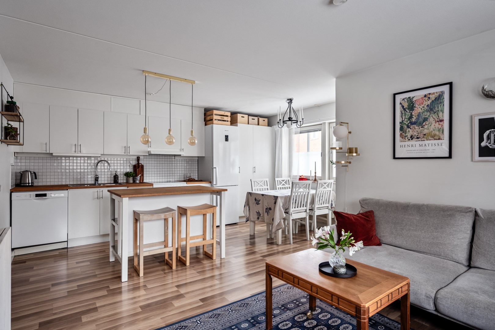 Välkommen till denna ljusa och välplanerade 3-rumslägenhet som erbjuder en perfekt balans mellan funktionalitet och stil. Här välkomnas du av en hall med stilrent klinkergolv, skön golvvärme och praktiska förvaringsmöjligheter, som ger ett fint första intryck. Lägenheten har genomgående laminatgolv
