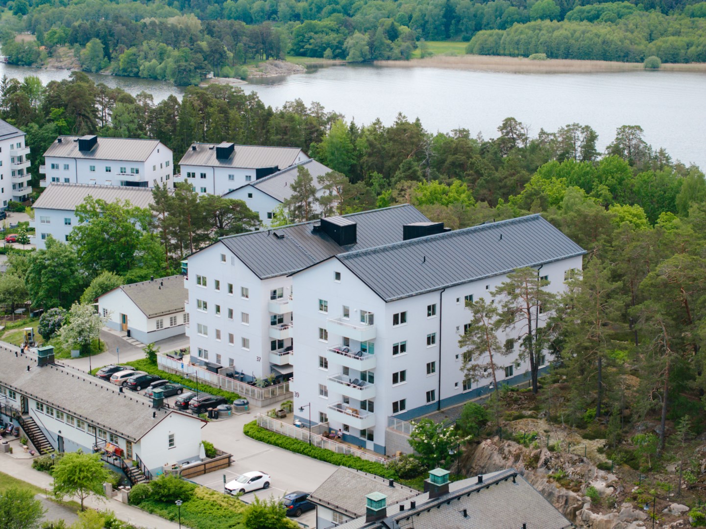 Nu har ni chansen att förvärva en av föreningens mest eftertraktade treor – ett hem med ett helt unikt läge och en södervänd balkong som vetter rakt mot skog och vatten. Balkongen är placerad på husets gavel och bjuder på en enastående utsikt, total avskildhet utan insyn samt sol från morgon till