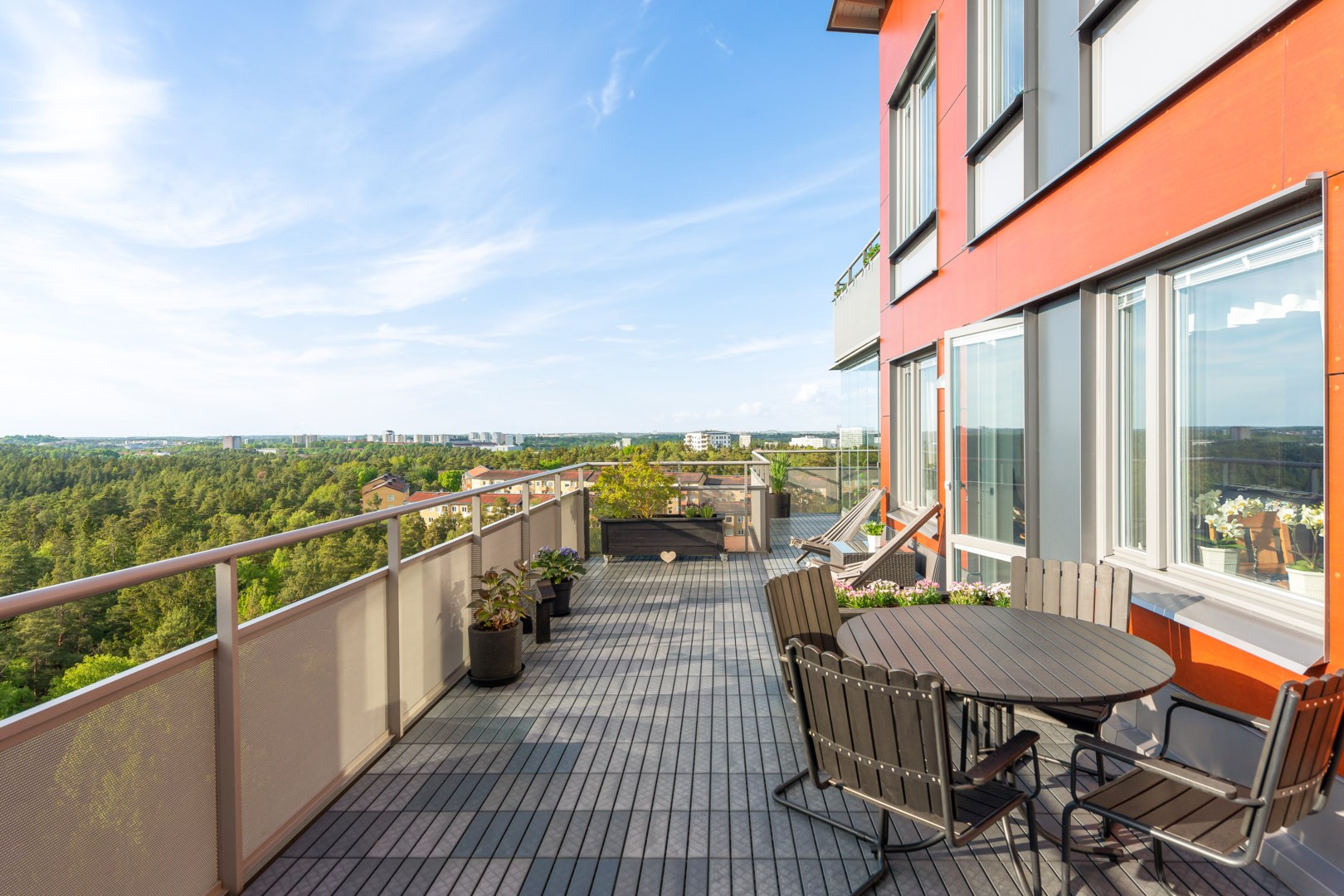 Välkommen till denna unika trea på våning 11 med en generös terass och inglasad balkong med utsikt över Mälaren och trädtopparna. Terassen vetter i sydvästläge med magiska solnedgångar som måste upplevas på plats. Balkongen är tillräckligt stor för både loungegrupp och caféset och kan användas året