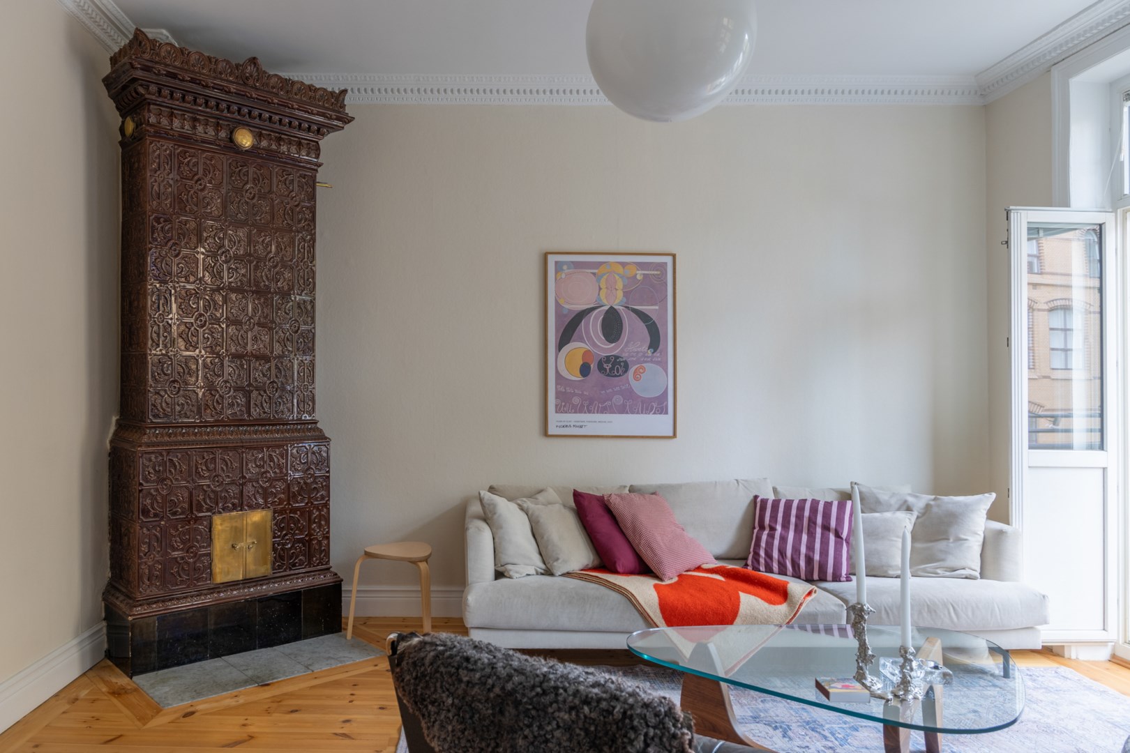 Karaktärsfull våning med fint läge i vacker sekelskiftesfastighet nära Kungsgatans gröna allé. Innanför de höga pardörrarna ett par trappor upp i porten till Löjtnantsgatan 14 väntar underbara kvadrat med en fantastisk känsla och rymd i 70 kvadrat. Två rum i fil med kakelugn i original och